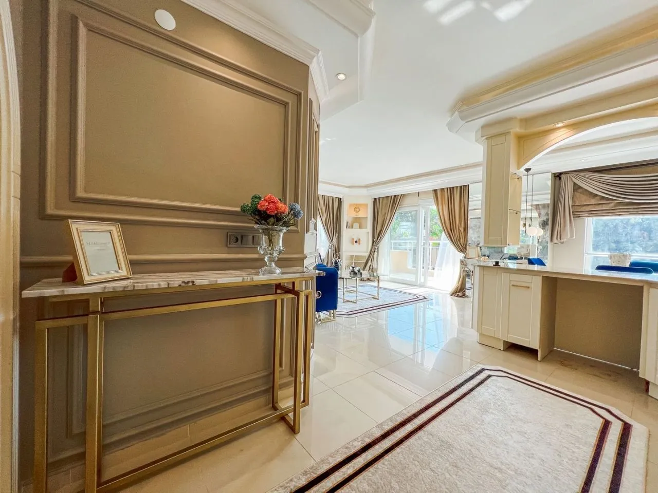 Просторная квартира, выполненная по индивидуальному дизайн-интерьеру, а также обставленная современная мебелью и техникой. Комплекс находится на закрытой территории в курортном районе Махмутлар. Благодаря удачной локации, всего за несколько минут Вы окажитесь на берегу моря.