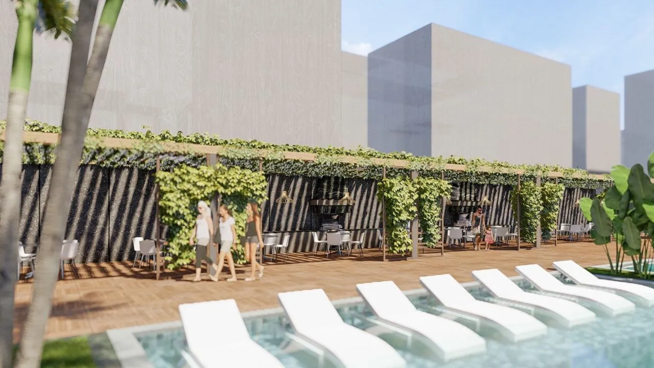Инфраструктура комплекса: большой открытый бассейн, аквапарк с горками, детский бассейн, бар у бассейна, детская открытая игровая площадка, закрытая детская игровая комната, бильярд, настольный теннис, кинотеатр, СПА-центр, барбекю, охрана 24/7, закрытый паркинг на 102 места.