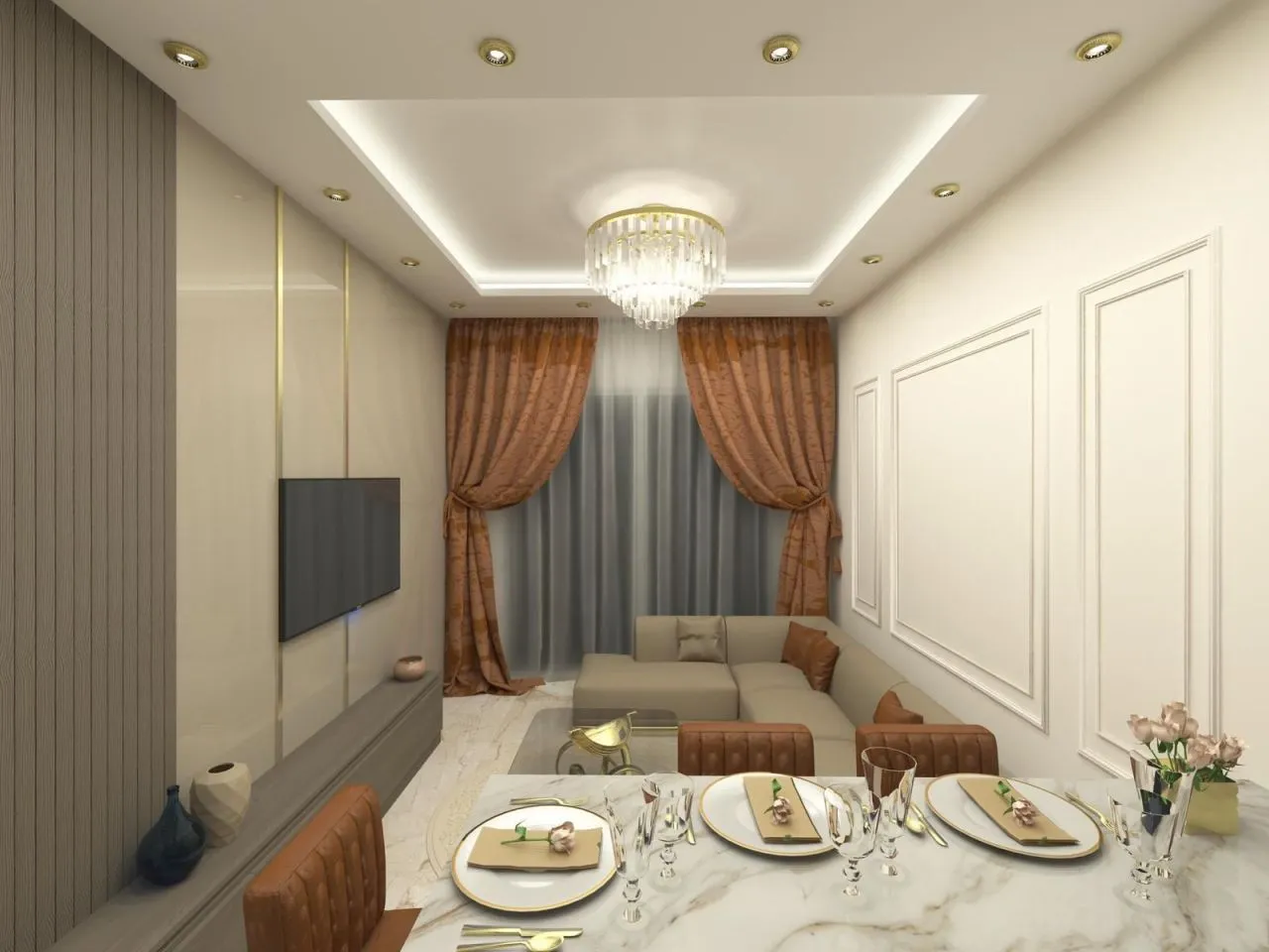 Планировка пентхауса 2+1, две спальни и гостиную, с кухней. В данном предложении кухня имеет отдельное расположение. Напольное покрытие – высококачественная керамическая плитка, в спальных комнатах – ламинат.