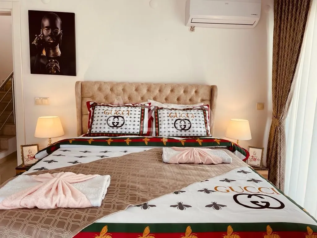 Пентхаус расположен в центре района Махмутлар (Аланья). Общая площадь квартиры составляет 160кв.м., расположение — два последних этажа. Планировка: прихожая, три спальные комнаты, гостиная, совмещенная с кухней, две ванные комнаты, два балкона и терраса.