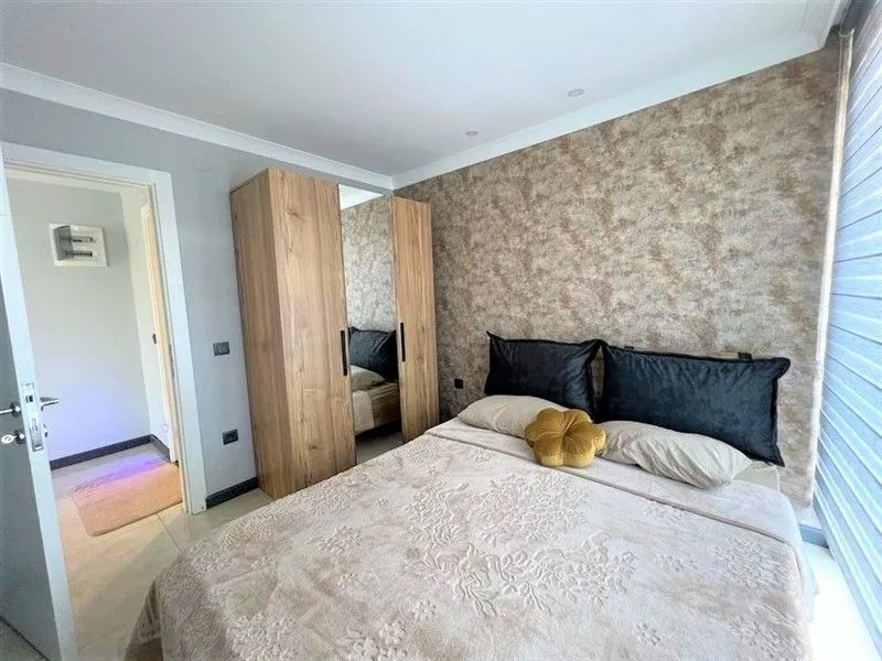 В площадь квартиры 185 м2 входят 3 ванные комнаты, 4 спальных комнаты и просторная гостиная, частично объединённая с кухней открытого типа. Есть балкон и терраса, с которых открываются потрясающей красоты виды на знаменитую крепость Алании.