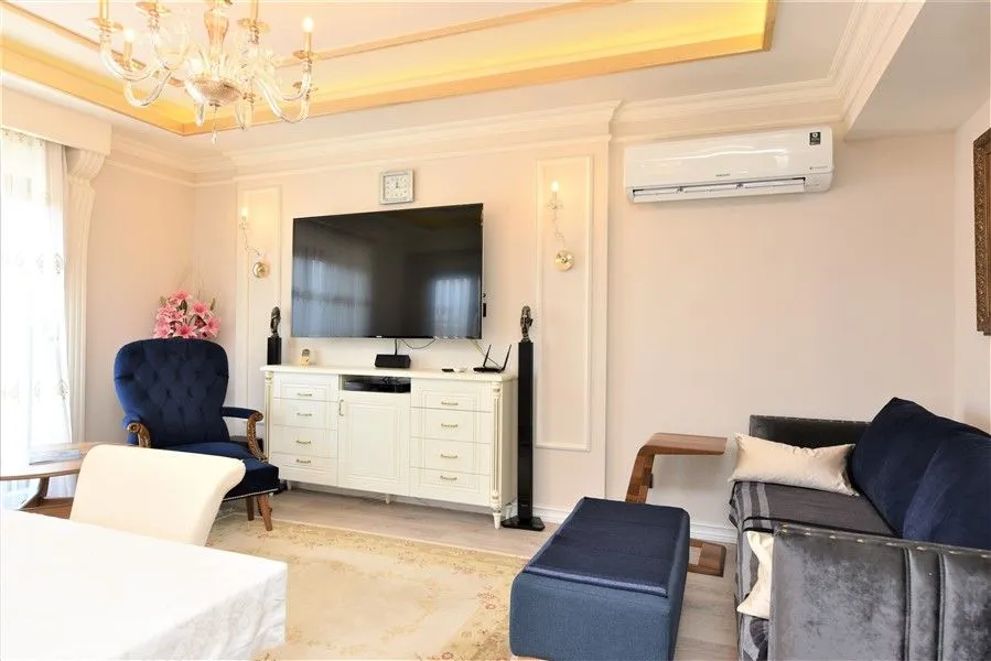 Представляем Вашему вниманию роскошный пентхаус 4+1 на 8 этаже фешенебельного жилого комплекса от известного застройщика. Площадь апартаментов 196 м2. В квартире имеется 4 спальни, большая гостиная, 3 ванные комнаты, туалетные комнаты, просторная терраса и балкон. Изысканный интерьер пентхауса не оставит равнодушным даже самого взыскательного покупателя. Из квартиры открываются великолепные панорамные виды на окрестности, горы и море, расстояние до которого составляет всего лишь 150 м. Центр города Алания также находится в шаговой доступности (500 м).