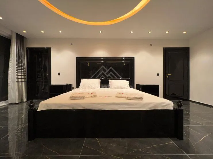 Rooms: 4+1Вид на море, горы и крепость Аланииплощадь участка 500 кв.мпланировка 4 +1 с американской кухней, 4 санузлаполностью мебелированаджакузи с видом на моречастный сад и бассейнисскуственный водопадпрачечнаяигровая комната: Бильярд + Футбол + Дизайнерские кресла для кинотеатра + СиневизионBluetooth система развлечения со звукомдо пляжа 3 кмгаражПлощадь: 300 м2Этажей: 2Кухня: открытаяТип объекта: вторичный объектПарковка: наземная крытаяБассейн: открытыйСанузел: 4Особенности объекта- стены выкрашены водостойкой - атласной краской