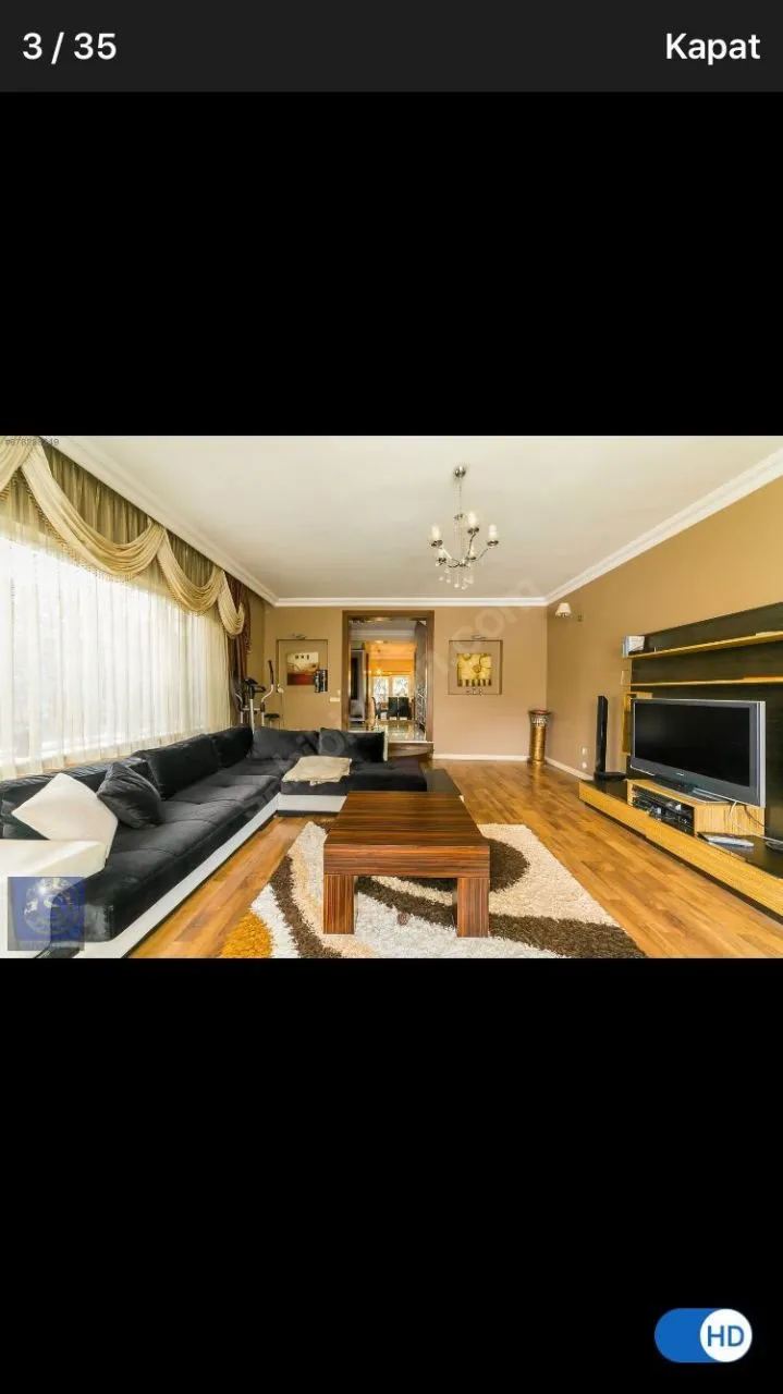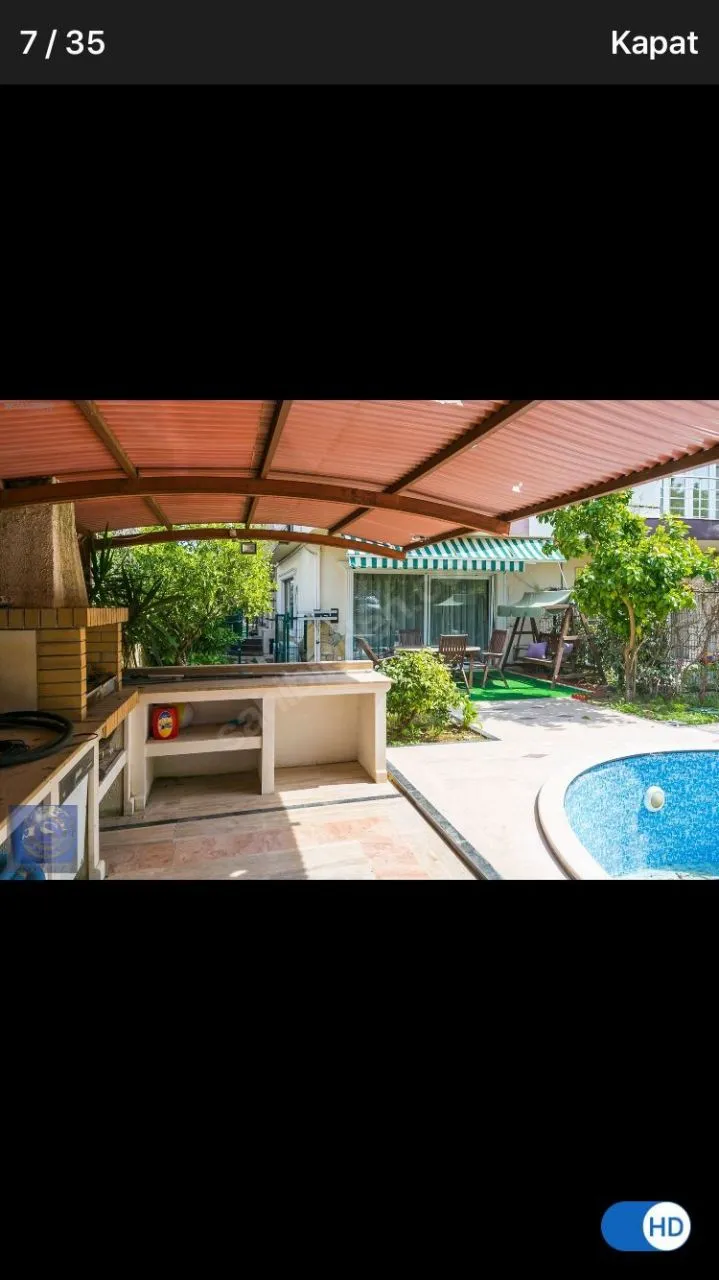 Дом постройки 2005 года, общая площадь 1100 кв.м, 3 этажа + подвальный этаж с окнами, 16 комнат, 6 туалетов, 4 ванные. Есть сад с плодовыми деревьями, бассейн.
