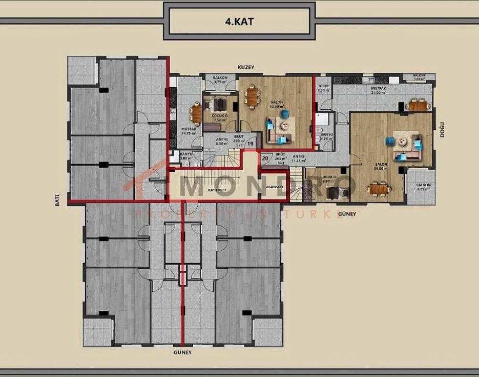 Квадратные метры недвижимости на продажу в Турции обычно указываются в соответствии с английскими/американскими стандартами. Чистый квадратный метр не включает, например, балкон. Пожалуйста, вычтите примерно от 10 до 15 %.