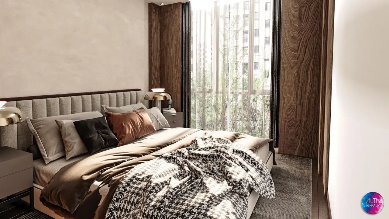 Квартира находится в районе Алтынташ. Планировка (1+1) и состоит из 1 спальни, 1 гостиной, 1 ванной комнаты. Он привлекает внимание людей дополнительными цветовыми и дизайнерскими решениями