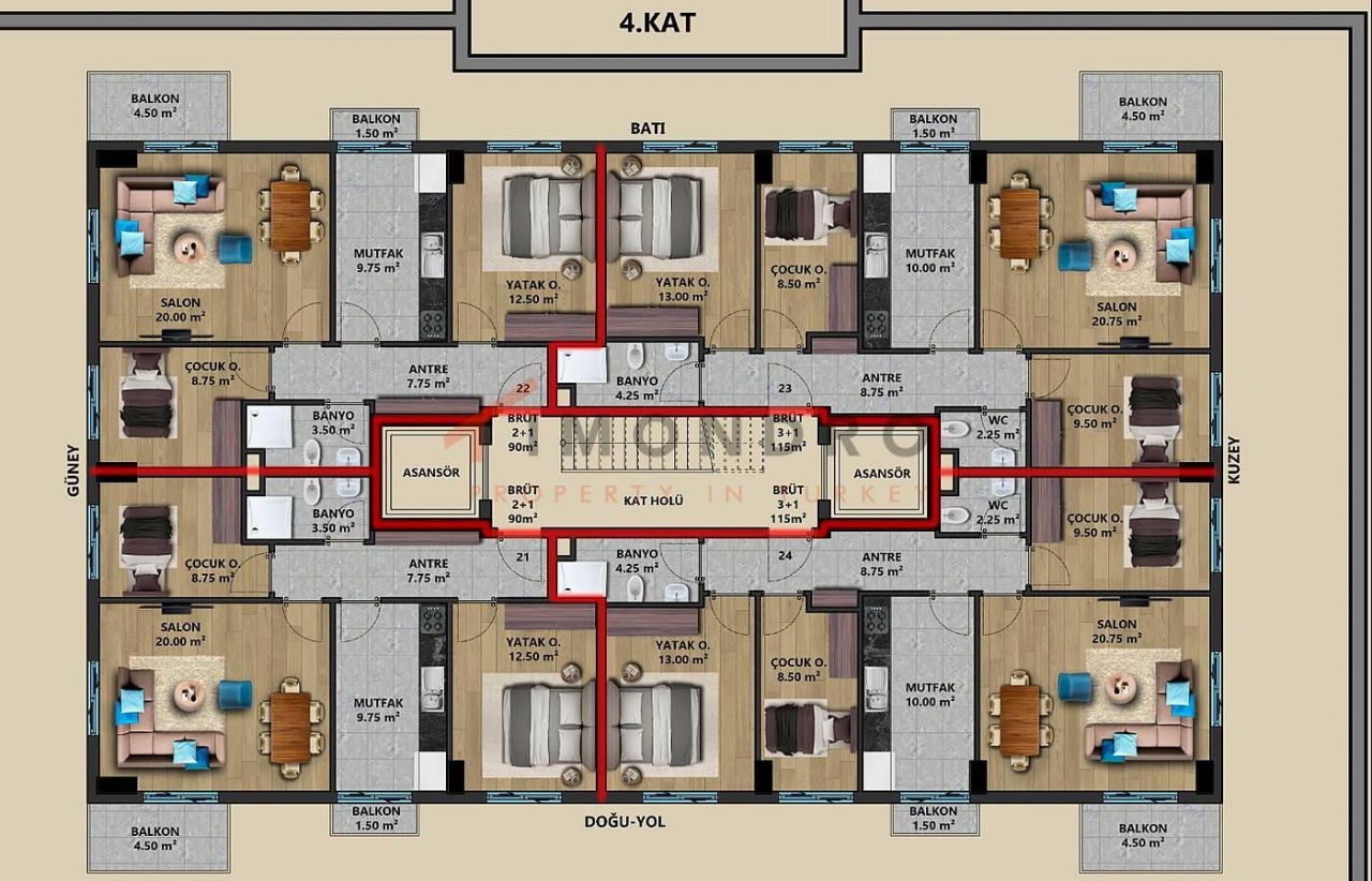 Квадратные метры недвижимости на продажу в Турции обычно указываются в соответствии с английскими/американскими стандартами. Чистый квадратный метр не включает, например, балкон. Пожалуйста, вычтите примерно от 10 до 15 %.