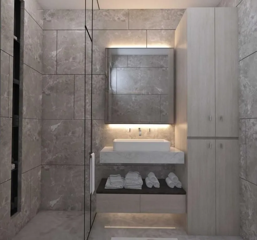 - Комнаты с отдельной душевой и гардеробной