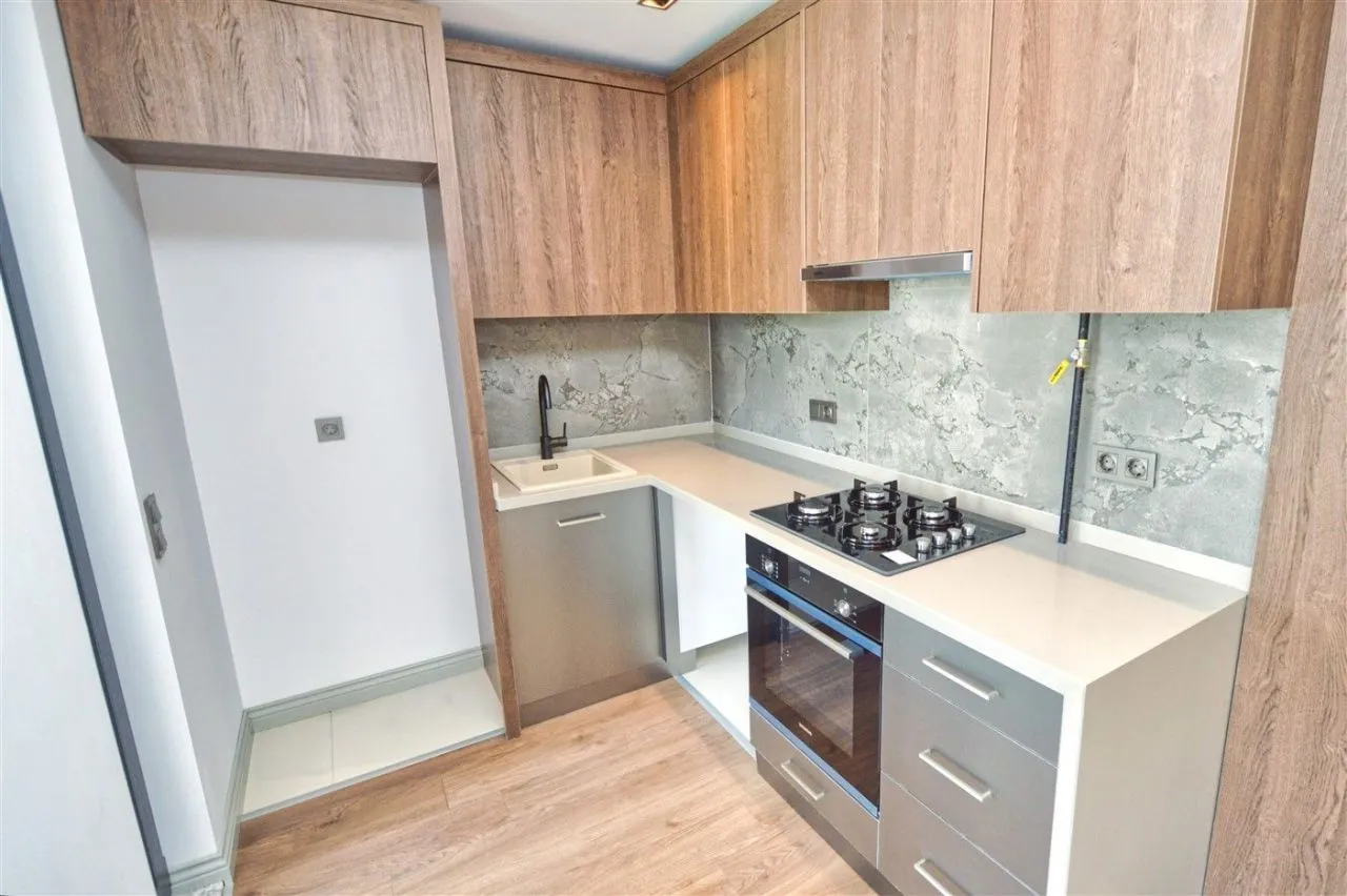 Представленная квартира планировки 2+1, общей площадью 95м2, включает наличие 2 спальных комнат, гостиную, совмещенную с кухонной зоной, ванную, совмещенную с туалетом и один большой балкон. Квартира продается с качественной отделкой. В каждой комнате установлены инверторные кондиционеры, до дверей квартиры проведено газовое отопление. Кроме того, на всех окнах квартиры, установлены электрические рольставни. При входе в квартиру установлен гардеробный шкаф. В гостиной, которая совмещена с кухонной зоной , имеется кухонный гарнитур современного дизайна со встроенной техникой: варочная поверхность, вытяжка, духовой шкаф. Столешница из современного экологичного материала, устойчивого к физическому и химическому воздействию. Установлена сантехника в ванной комнате апартаментов. Полы застелены ламинатом в спальнях и гостиной зоне. В ванной, туалете, и коридоре имеется керамическая плитка. Подвесные потолки со спот-освещением придают особый уют и комфорт квартире.
