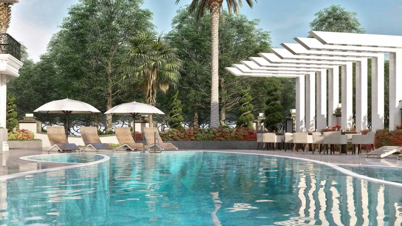 — Характеристика жилого комплекса: • Наружное освещение • Облагороженная зеленная территория • Открытая парковка • Крытая парковка • Беседка • Зона для барбекю • Детская игровая площадка • Детская игровая комната • Открытый бассейн • Крытый бассейн • Зона отдыха с шезлонгами • Лобби • Турецкая баня • Сауна • Паровая комната • Фитнес зал • Настольные игры • Кинозал
