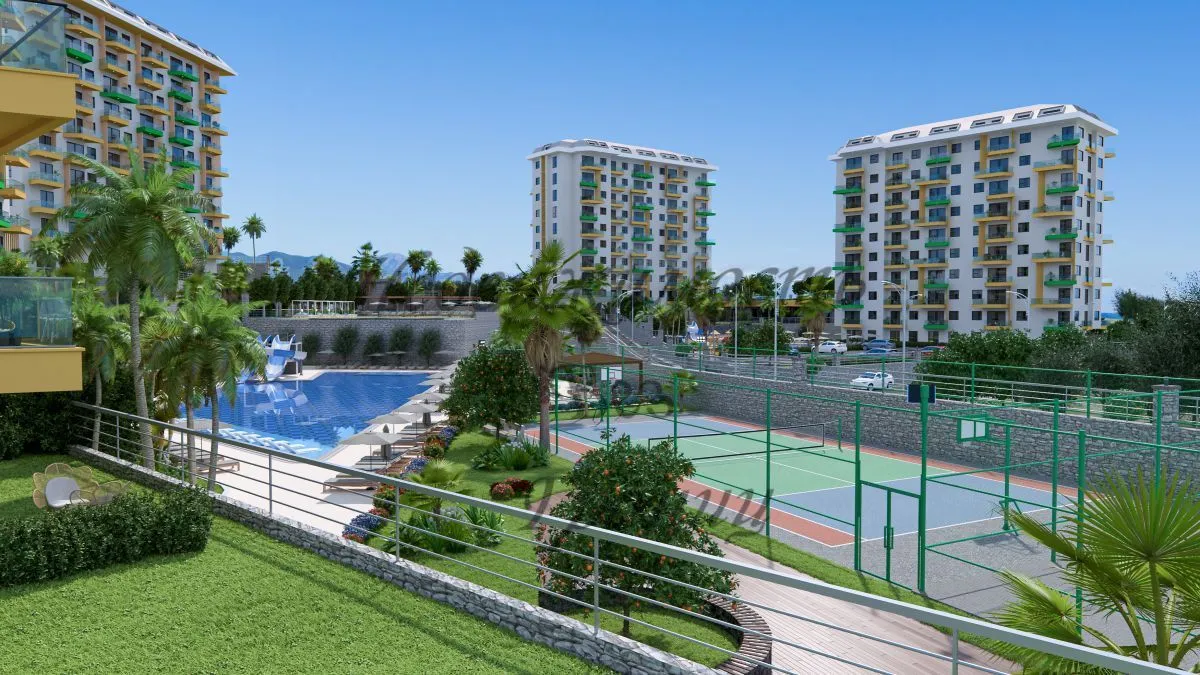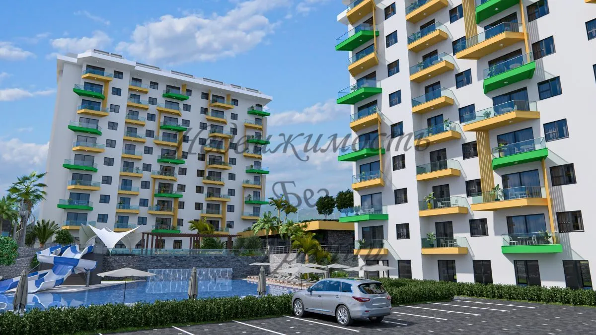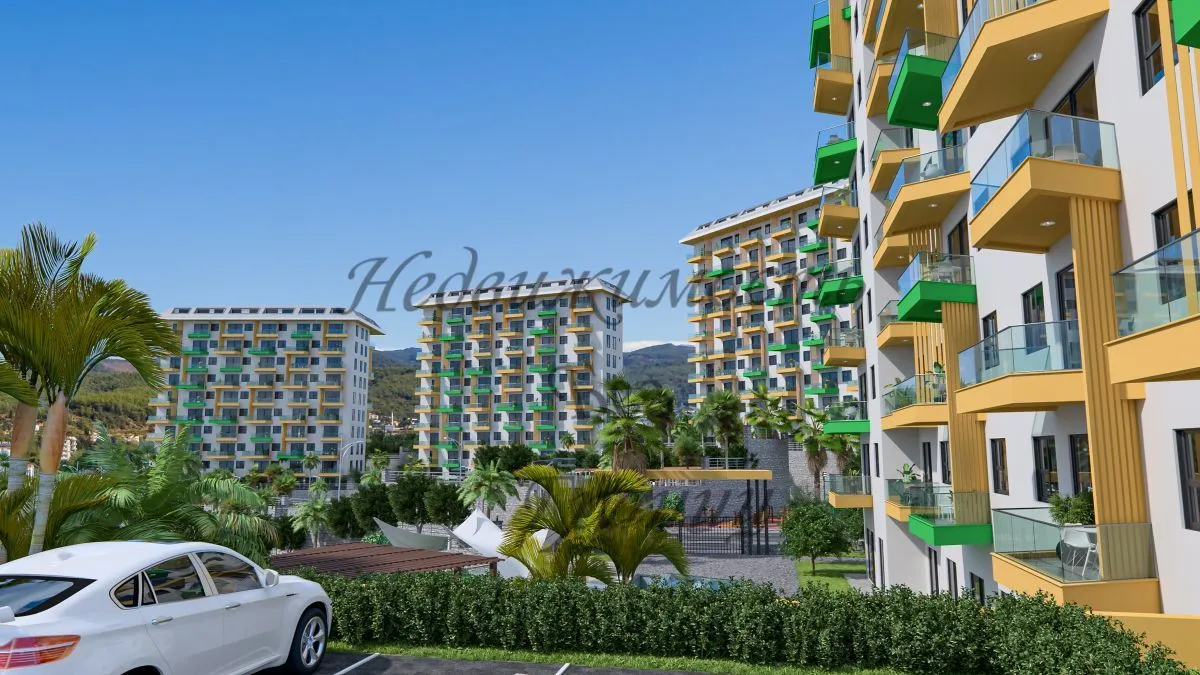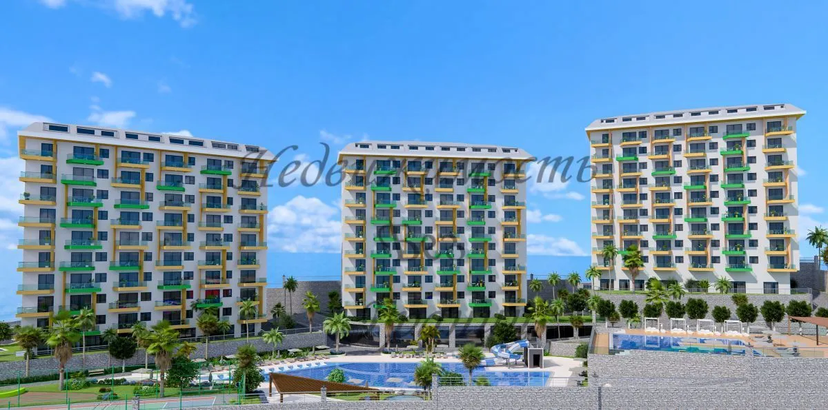 Для Вас строится комфортный и уютный комплекс на берегу Средиземного моря в окружении густых сосновых лесов, которые наполняют морской воздух целебными фитонцидами и дарят Вам ощущение покоя и безмятежности. Жилой комплекс строится на участке площадью 7700 м2 и состоит из пяти блоков. Панорамные окна открывают великолепный вид на горы, море и зеленые просторы. Комфортный комплекс на берегу Средиземного в районе Авсаллар моря имеет Планировки: 2+1 — 80 м2 2+1 дуплекс – пентхаус – 160 м2 На территории комплекса находятся: — Открытый большой бассейн — Бассейн с горками — Зона барбекю — Детская игровая площадка — Открытый паркинг — Фитнес — Закрытый зимний бассейн — Хамам — Римская паровая комната — Финская сауна — Детская игровая комната — Теннисный корт — Зоны отдыха у бассейна Технические характеристики: Антибактериальный фасад, шумо – и влагоизоляция по европейским стандартам ISO9001, современный лифт, система противопожарной сигнализации, центральная спутниковая система, охрана и видеонаблюдение. В апартаментах : стальные двери со первоклассной степенью защиты, домофон с видеосистемой, подвесные потолки и точечное скрытое освещение, моющаяся краска на стенах, керамогранит на полу, оборудованные ванные комнаты, кухонный гарнитур европейского образца, двойные алюминиевые стеклопакеты. До моря – 1 км До центра Алании – 23 км До аэропорта Газипаша — 65 км До аэропорта Анталья — 100 км Окончание строительства в декабре 2024 года. Застройщик дает беспроцентную рассрочку при покупке квартиры в этом комплексе. Первоначальный взнос — 35%. Остальная сумма — до окончания строительства.Характеристики объекта