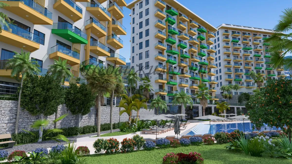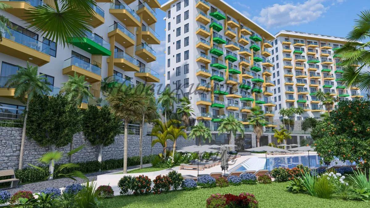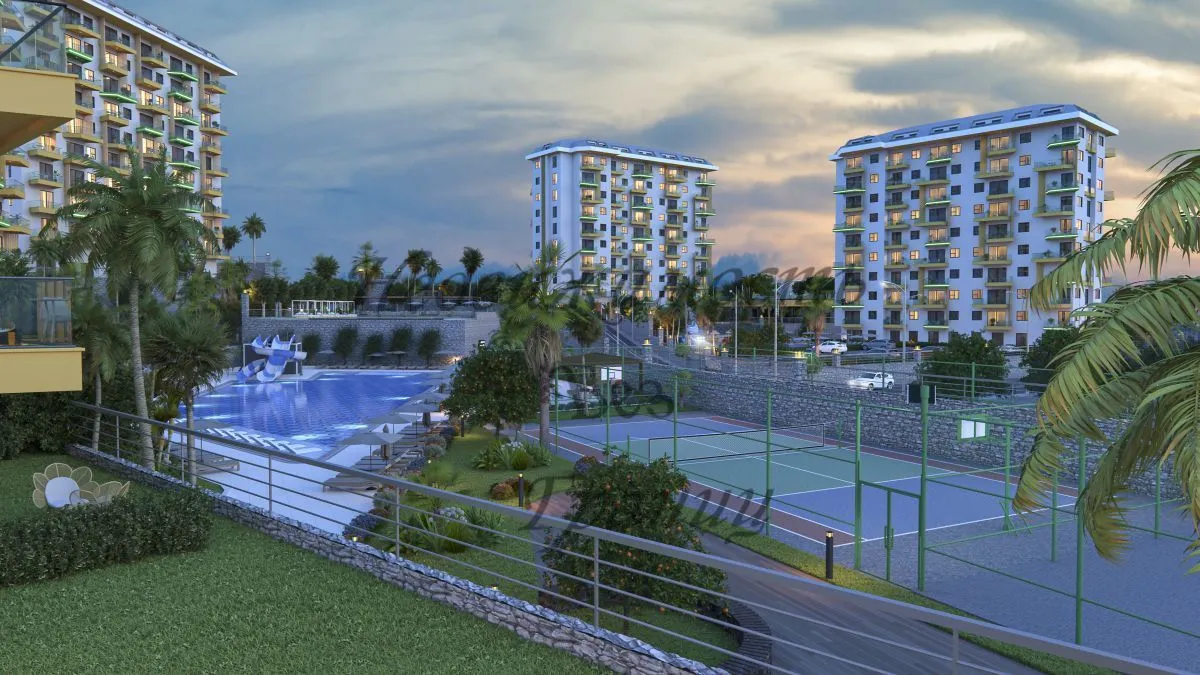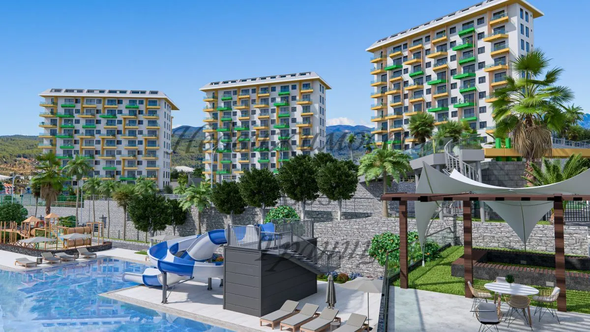 Для Вас строится комфортный и уютный комплекс на берегу Средиземного моря в окружении густых сосновых лесов, которые наполняют морской воздух целебными фитонцидами и дарят Вам ощущение покоя и безмятежности. Жилой комплекс строится на участке площадью 7700 м2 и состоит из пяти блоков. Панорамные окна открывают великолепный вид на горы, море и зеленые просторы. Комфортный комплекс на берегу Средиземного в районе Авсаллар моря имеет Планировки: 2+1 — 80 м2 2+1 дуплекс – пентхаус – 160 м2 На территории комплекса находятся: — Открытый большой бассейн — Бассейн с горками — Зона барбекю — Детская игровая площадка — Открытый паркинг — Фитнес — Закрытый зимний бассейн — Хамам — Римская паровая комната — Финская сауна — Детская игровая комната — Теннисный корт — Зоны отдыха у бассейна Технические характеристики: Антибактериальный фасад, шумо – и влагоизоляция по европейским стандартам ISO9001, современный лифт, система противопожарной сигнализации, центральная спутниковая система, охрана и видеонаблюдение. В апартаментах : стальные двери со первоклассной степенью защиты, домофон с видеосистемой, подвесные потолки и точечное скрытое освещение, моющаяся краска на стенах, керамогранит на полу, оборудованные ванные комнаты, кухонный гарнитур европейского образца, двойные алюминиевые стеклопакеты. До моря – 1 км До центра Алании – 23 км До аэропорта Газипаша — 65 км До аэропорта Анталья — 100 км Окончание строительства в декабре 2024 года. Застройщик дает беспроцентную рассрочку при покупке квартиры в этом комплексе. Первоначальный взнос — 35%. Остальная сумма — до окончания строительства.Характеристики объекта
