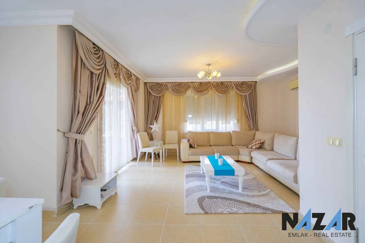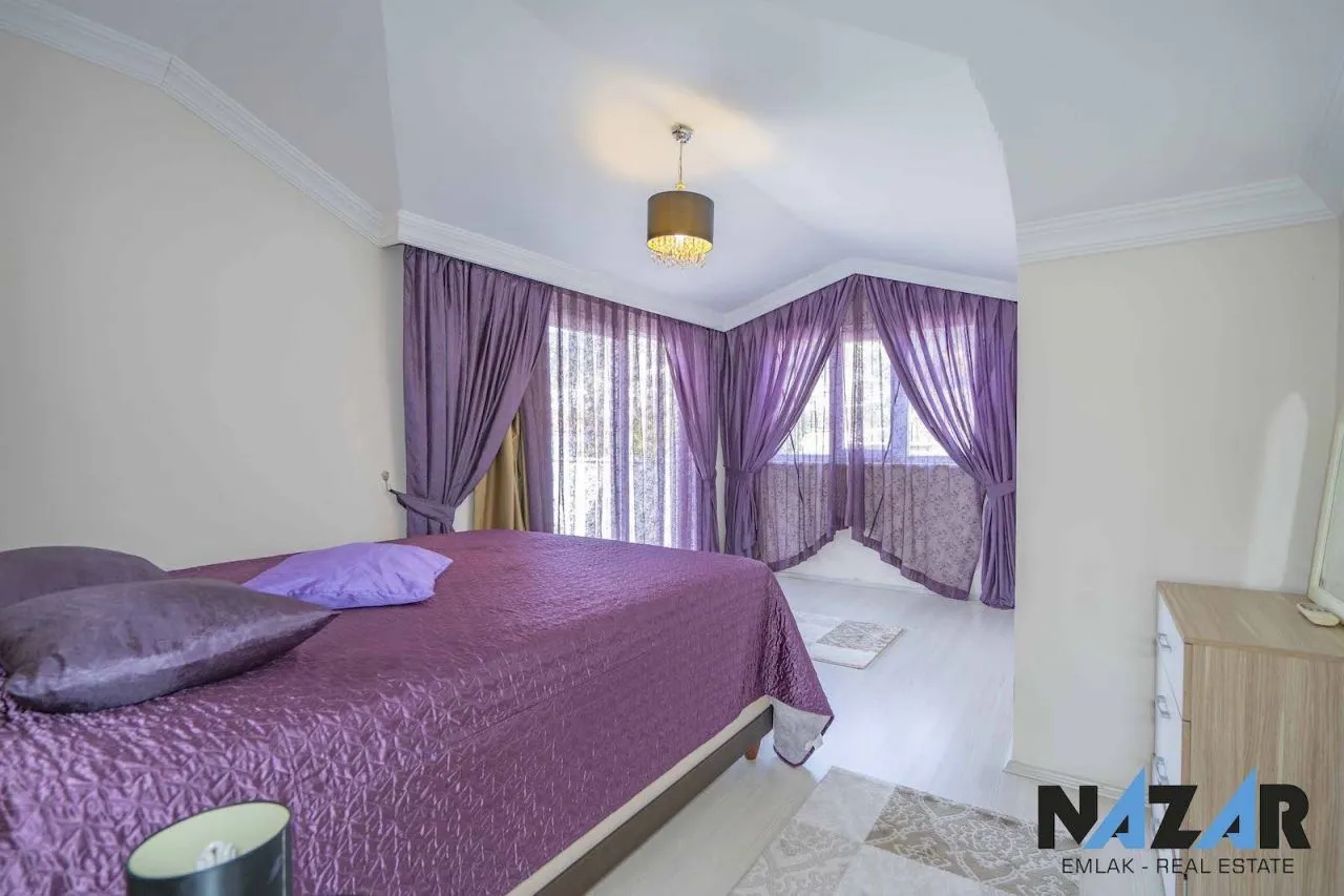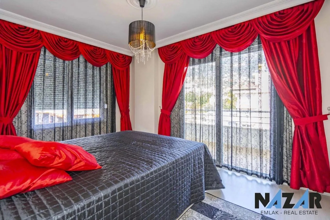 Предлагаем на продажу двухуровневую меблированную квартиру, расположенную в Джикджилли, одном из самых густонаселенных и престижных районов с хорошо развитой городской инфраструктурой недалеко от центра Аланьи. Расстояние до моря составляет 1 км. Апартаменты, из которых открывается вид на город и природу, привлекает внимание большими габаритами, современным дизайном интерьера и стильной обстановкой. Планировка 4+1 общей площадью 200 м2 включает просторную гостиную, отдельную кухню, 2 ванные комнаты с душевой кабиной, туалет и 4 балкона. Нижний этаж двухуровневой квартиры выложен плиткой, а верхний – паркетом.Окна выходят на север, юг и запад, так что квартира весь день освещается солнцем и теплая зимой.В здании есть лифт, услуги смотрителя, открытая парковка и зеленый сад. Имеются также солнечные батареи для нагрева горячей воды, что существенно экономит электроэнергию. Вы можете приобрести эту пятикомнатную квартиру в Джикджилли или рассмотреть другие интересные варианты с помощью нашего лицензированного АН Nazar Real Estate.
