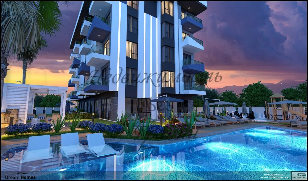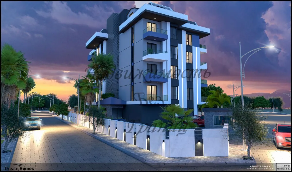 Новый комплекс в Демирташе Рады Вам представить новый комплекс с собственной инфраструктурой. Расположенный в районе Демирташ, на расстояние всего 200 метров от золотистых песчаных пляжей Средиземного моря. Резиденция представит собой одно четырёхэтажное здания с закрытой территорией и с отличной социальной инфраструктурой. Демирташ – укромный уголок турецкой Ривьеры, где безупречная экология и спокойная атмосфера — ключ к безмятежной жизни и отдыху! Количество квартир — 28. Дата начала строительства — 01.04.2023 Дата окончания строительства — 31.12.2024 Планировки квартир: Двухкомнатные квартиры 1+1, площадью 43 м2 Двухуровневые трехкомнатные пентхаусы 2+1, площадью 100 м2 Информация о квартирах: Чистовая отделка Санузел полностью укомплектован сантехникой и душевой кабиной Подвесные потолки Современные межкомнатные двери Новый комплекс в Демирташе будет оснащён полной инфраструктурой, как внутренней, так и внешней. Все квартиры с чистовой отделкой, санузлами и встроенными кухнями. Инфраструктура комплекса: Открытый бассейн Детский бассейн Кафе/ресторан Массажный кабинет Паровая комната Сауна Фитнес-центр Детская площадка Зона для барбекю Ухоженная зелёная территория Консьерж Охрана 24/7 Видеонаблюдение 24/7 Открытая парковка Лифт Генератор Расстояние до моря: всего 200 метров О районе: Демирташ – укромный уголок турецкой Ривьеры. Территория района на юге ограничена длинной береговой линией, на севере – горными хребтами Тавр. Самобытный курорт с доступной недвижимостью привлекает предприимчивых девелоперов и любителей красивых и широких пляжей. Песчано-галечные пляжи Демирташа просторны и имеют пологий вход в море. Чистая и теплая вода, отсутствие сильных приливов гарантируют безопасность отдыхающим. Морское дно у берега покрыто песком или мелкой галькой. Тишина на побережье располагает к рыбалке: в акватории водятся голубые крабы, осьминоги, форель. Пляжные рестораны предоставляют на прокат шезлонги и зонтики.Характеристики объекта
