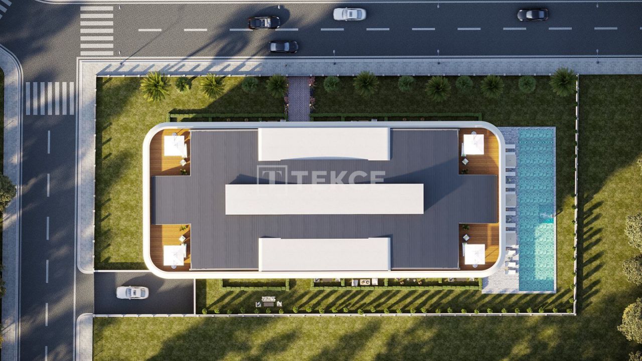 Квартиры в Анталии, Коньяалты, расположены рядом с основными объектами бытовой инфраструктуры, в 2,7 км от пляжа, в 3,2 км от канатной дороги Сарысу, в 5,8 км от больницы Олимпос, в 14,4 км от Калеичи и в 26 км от аэропорта Анталии.