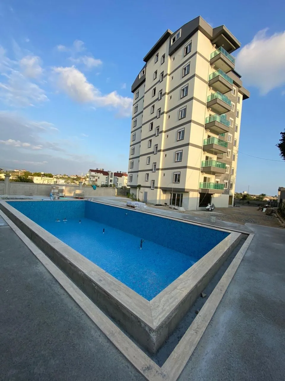 Резиденция расположена в 1км от моря, в пешей доступности ко всем удобствам. Квартира выходит окнами на запад, откуда открывается прекрасный вид на природу и город. Квартира красиво меблирована и имеет современный дизайн и находится очень близко к главной дороге, ведущей прямо к песчаному пляжу Авсаллара.
