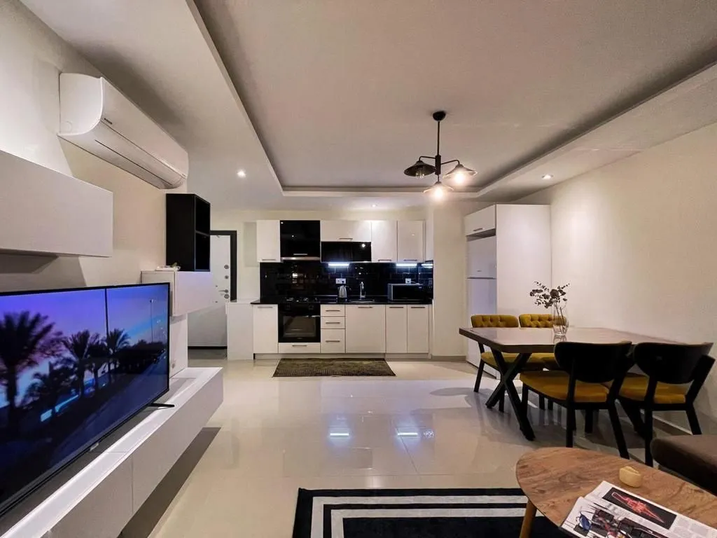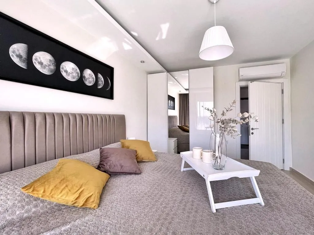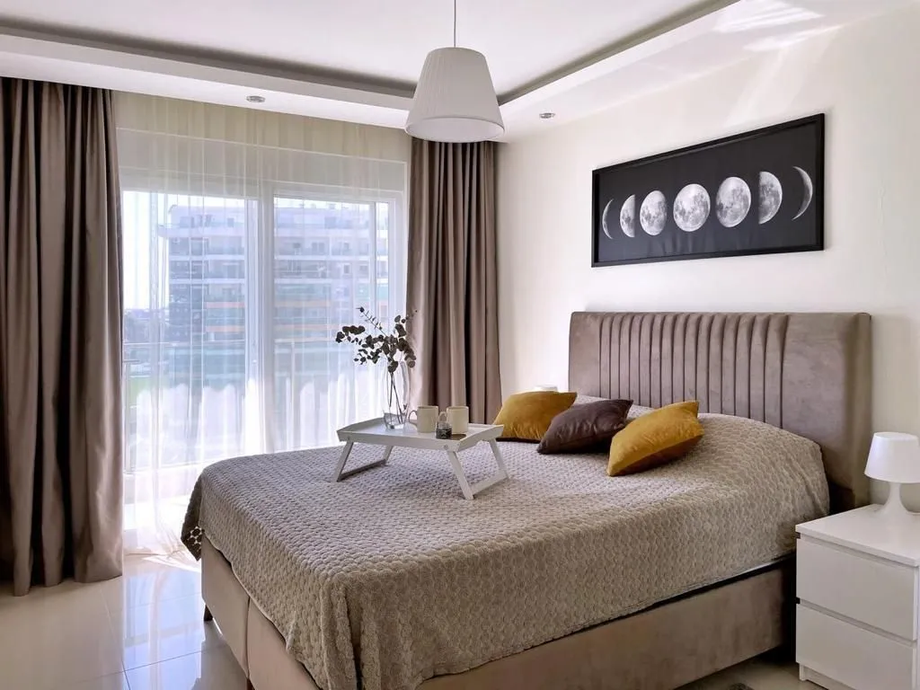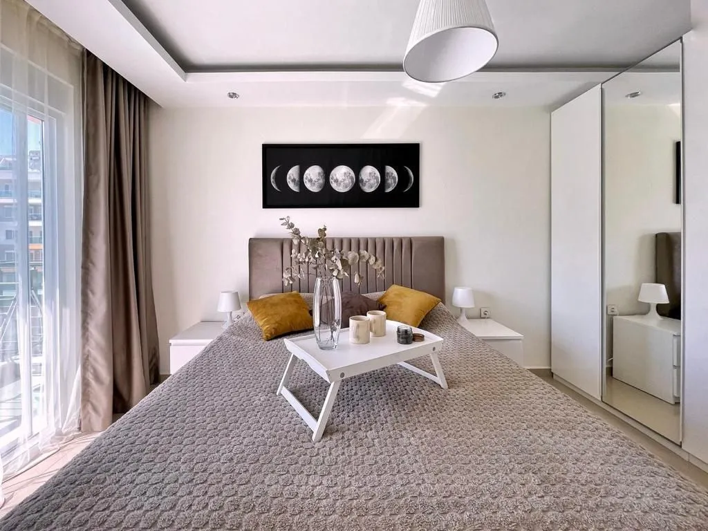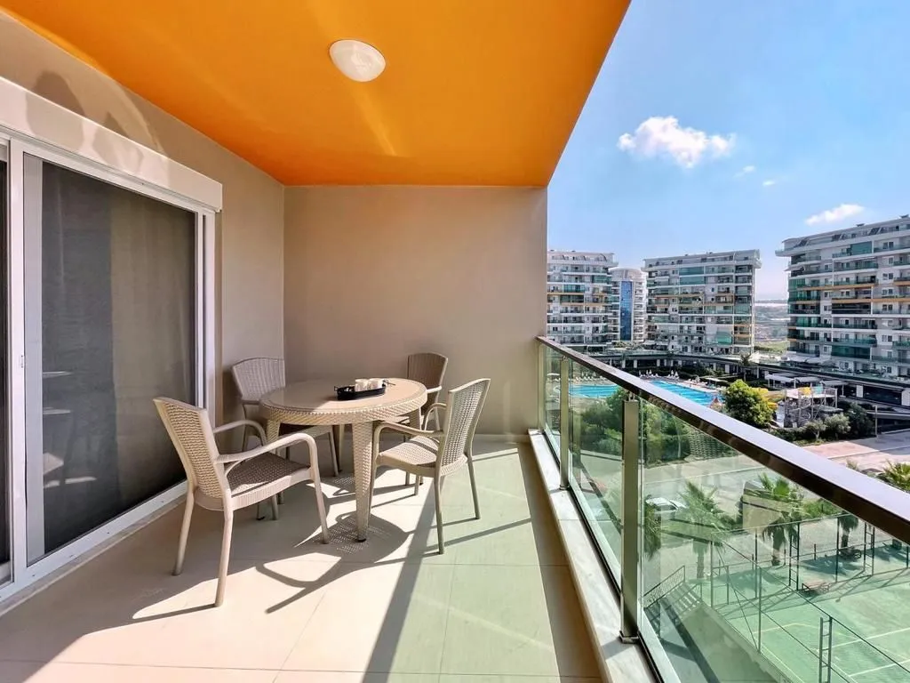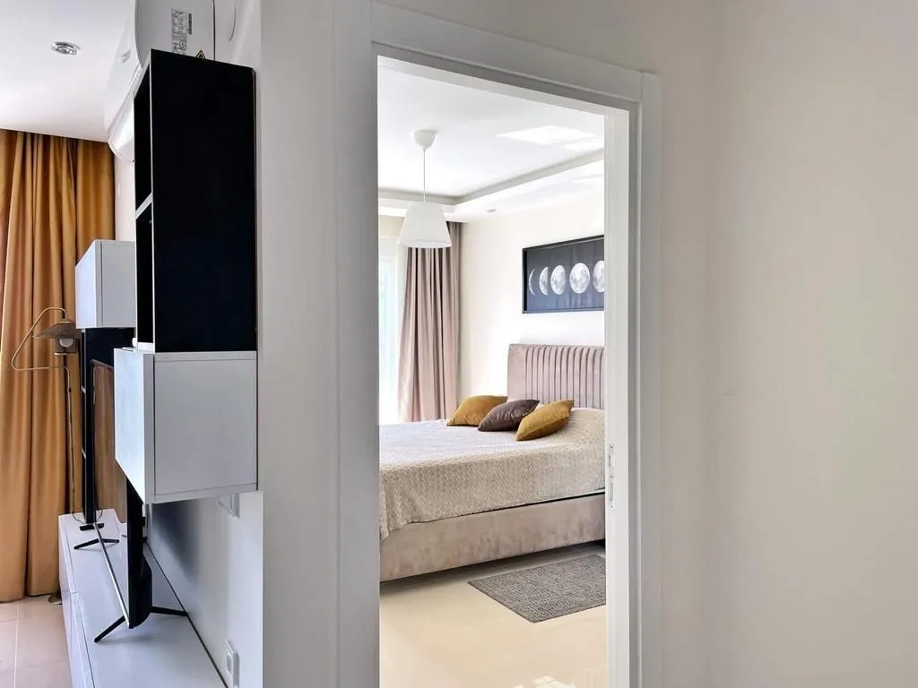 1+1, 60м2 6 этаж из 10 Блок 5 (всего 10 блоков) Квартира юго-восточная Вид на бассейн Год постройки комплекса 2021 На территории: 2 открытых бассейна с аквапарком 1 зимний бассейн детская игровая площадка Теннис, футбол, волейбол Сауна Хамам Детская комната Кинотеатр Бильярд Фитнес Охраняемая территория Ресторан на территории Собственный пляж с шезлонгами До пляжа 900 м