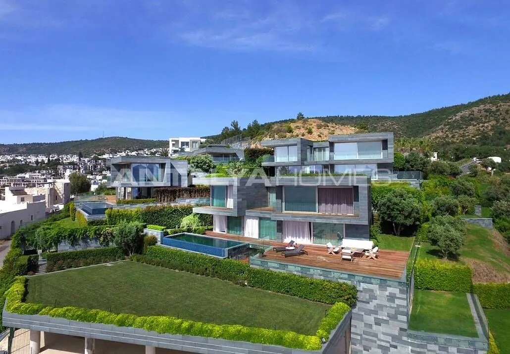 На каждой вилле есть индивидуальный бассейн, сад с большой территорией и крытая автостоянка. Ультрароскошный проект, сочетающий в себе историю и современность и находящийся недалеко от мавзолея в Галикарнасе, – идеальный вариант, если вы хотели купить виллу в Бодруме, Турция.