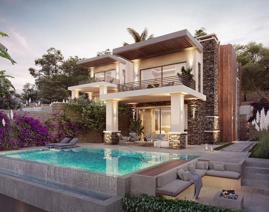 Современный проект вилл с потрясающим панорамным видом на море и пристань Ялыкавак – купить в Mayalanya