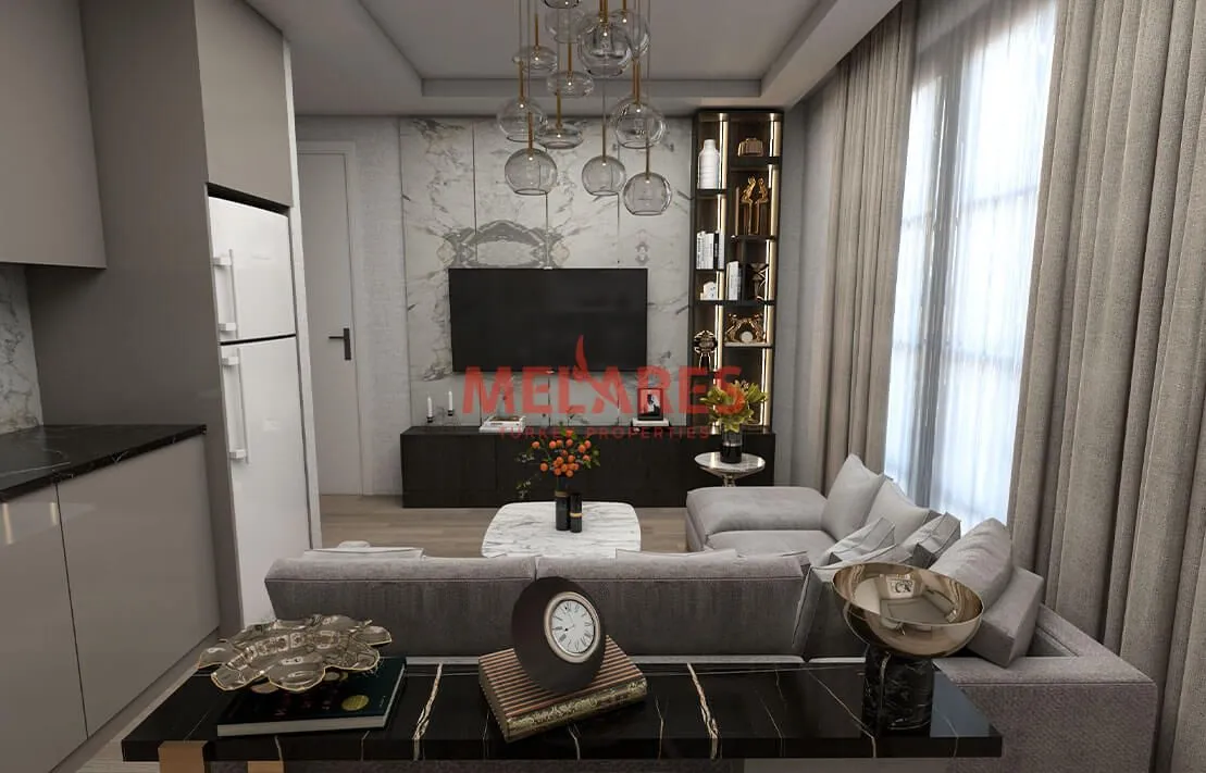 Квартира на продажу по доступным ценам и в современной архитектуре – лучший вариант для инвестиций в недвижимость в Стамбуле. Он состоит из просторной гостиной с американской кухней, большого балкона с выходом из всех комнат, откуда открывается потрясающий вид на море.