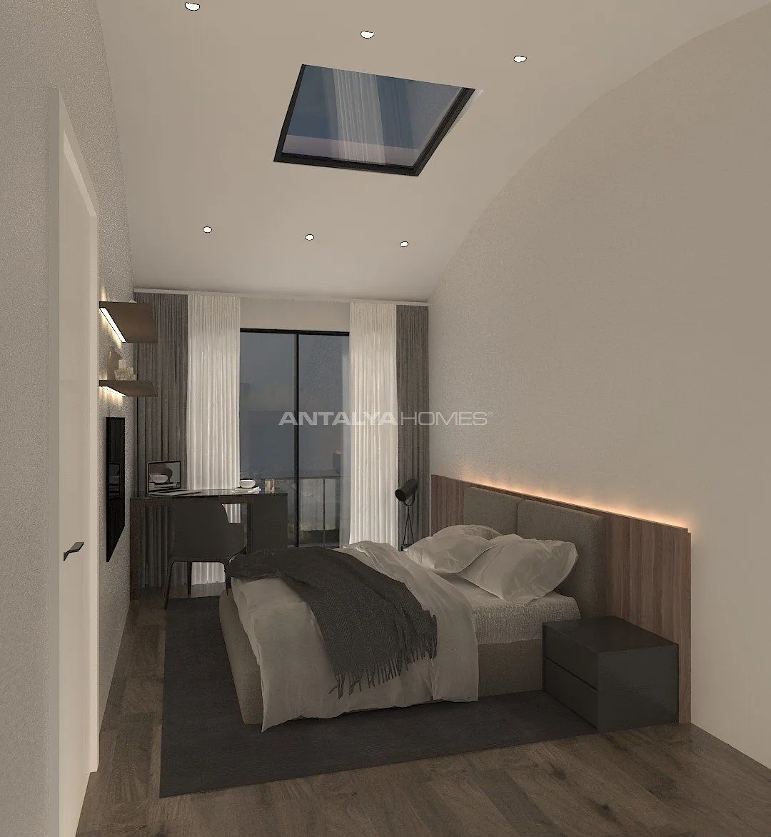 Жилой комплекс, ориентированные на южную сторону, имеет открытый вид на крепость, город и море. Недвижимость на продажу в Газипаша, Турция, оборудована инфраструктурой для подключения кондиционеров, газа и газового котла, полами и системой освещения, электро-, водо- и теплоснабжением, ванной комнатой и кухонными шкафами, встроенной кухонной техникой, входной и межкомнатными дверями, балконными дверями и окнами, душевой кабиной, плиткой на стенах в санузлах. В проекте представлены квартиры с 1 спальней на среднем этаже и двухуровневые пентхаусы 4+1. Квартиры оборудованы шкафами для стиральных машин и кухонными столешницами.