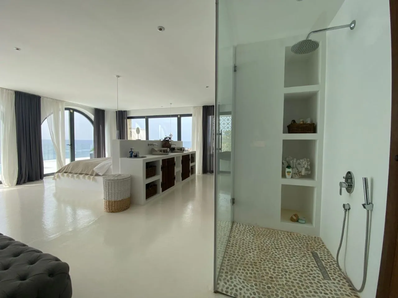В планировке виллы предусмотрены: 3 шикарных спальни с панорамным видом на море и природу. Детская комната, укомплектованная по самым высоким стандартам. Комната для горничной. Кладовая. Просорная гостинная с кухней американского плана, площадью 170 м2, отлично подойдет для устраиваемых званых ужинов.