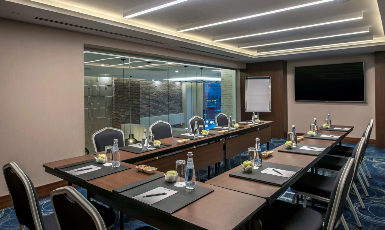 Все 5 ультрасовременных конференц-залов расположены на антресольном этаже и предлагают гостям уверенность в проведении незаметных встреч. Динамичные конференц-залы, оформленные в современном стиле, оснащены новейшими технологиями и естественным освещением, что гарантирует позитивный опыт встречи. Кроме того, яркие конференц-залы представляют собой подходящее место для развлекательных встреч, а также для проведения деловых встреч.