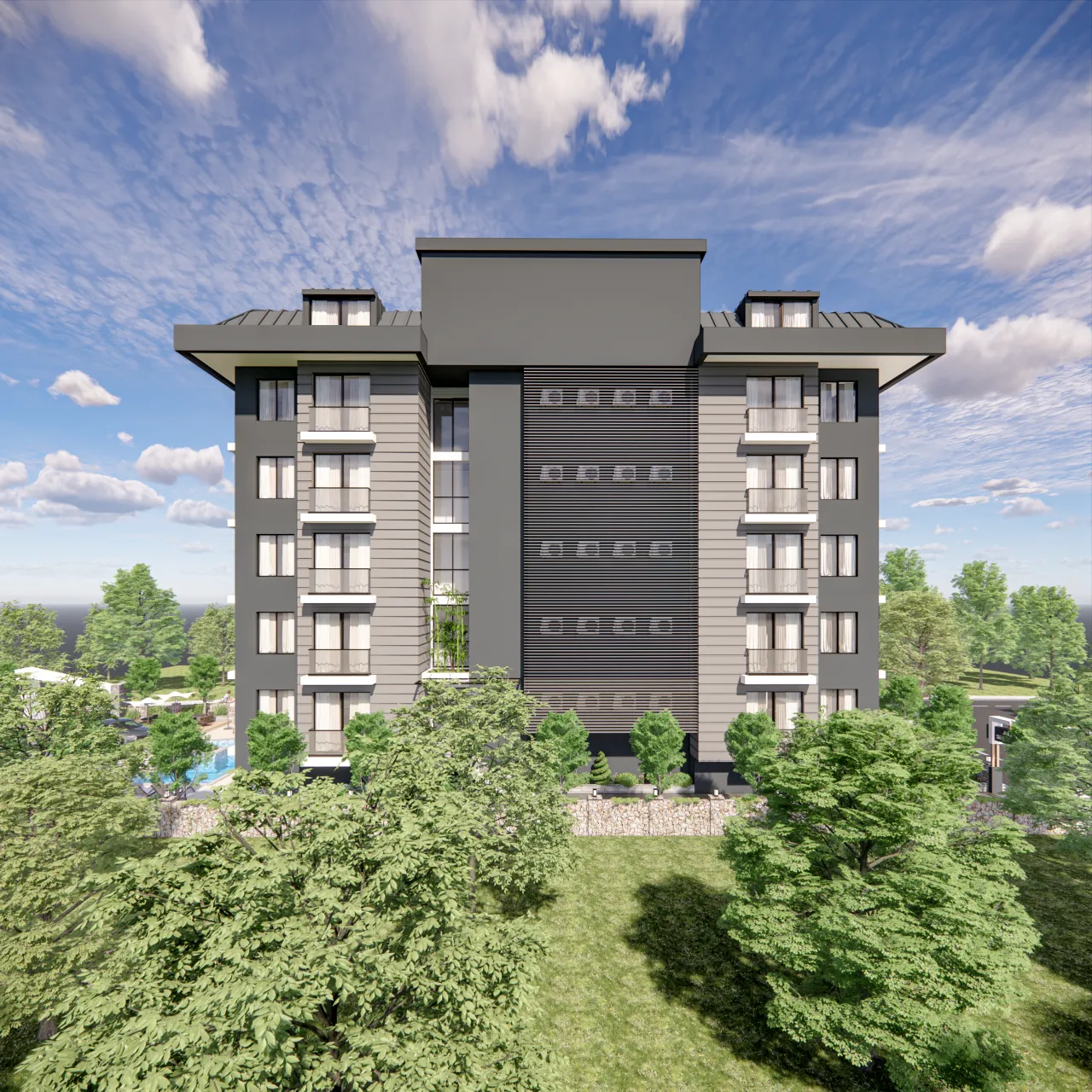 Комплекс состоит из 1 блока, всего 20 квартир, 16 из которых 2+1 и 4 3+1 (дуплекс). На продажу выставлены квартиры : Квартиры планировкой 2+1 - 60 м² + 10 м² (Балкон) Квартира-дуплекс 3+1 - 130 м² + 21 м² (Балкон) Двухуровневая квартира 3+1 - 125 м² + 14 м² (Балкон)