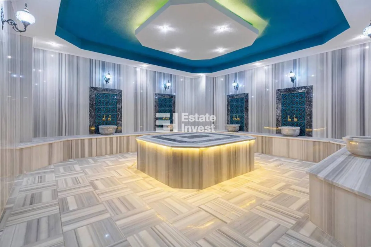 Инфраструктура комплекса: открытый и закрытый бассейн, сауна, хамам, фитнес, комната отдыха.