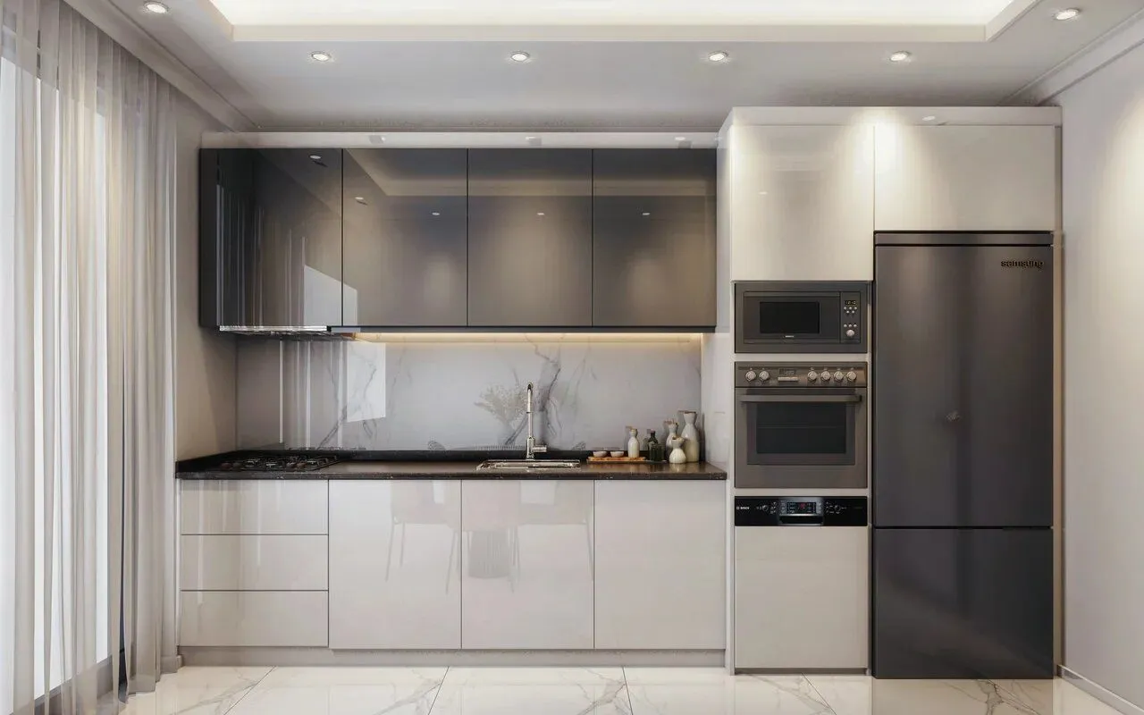 Лаковые кухонные шкафы