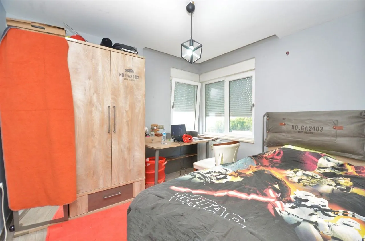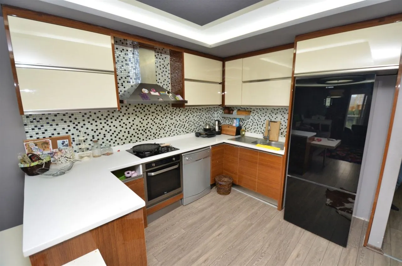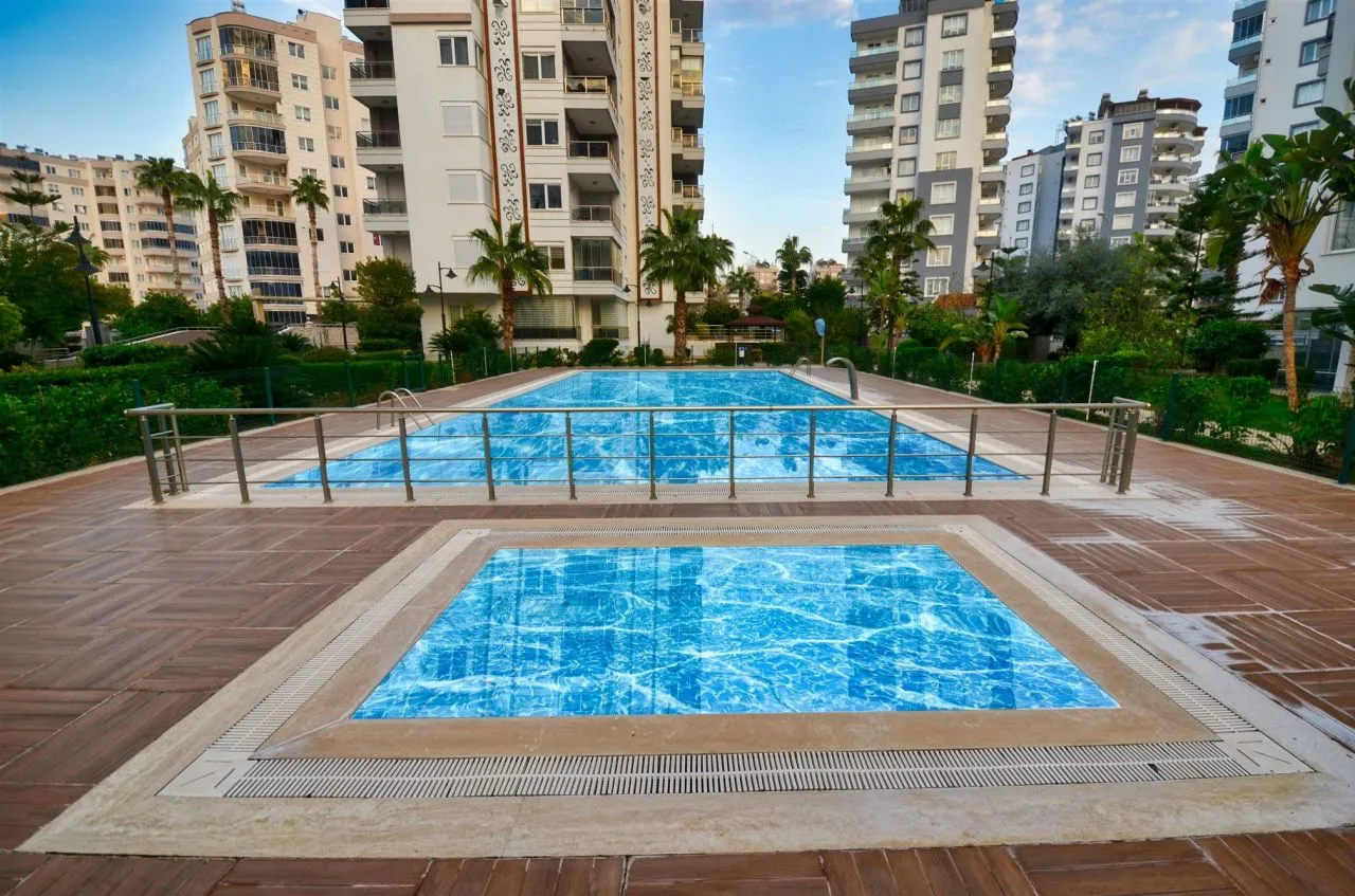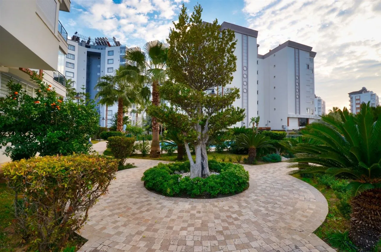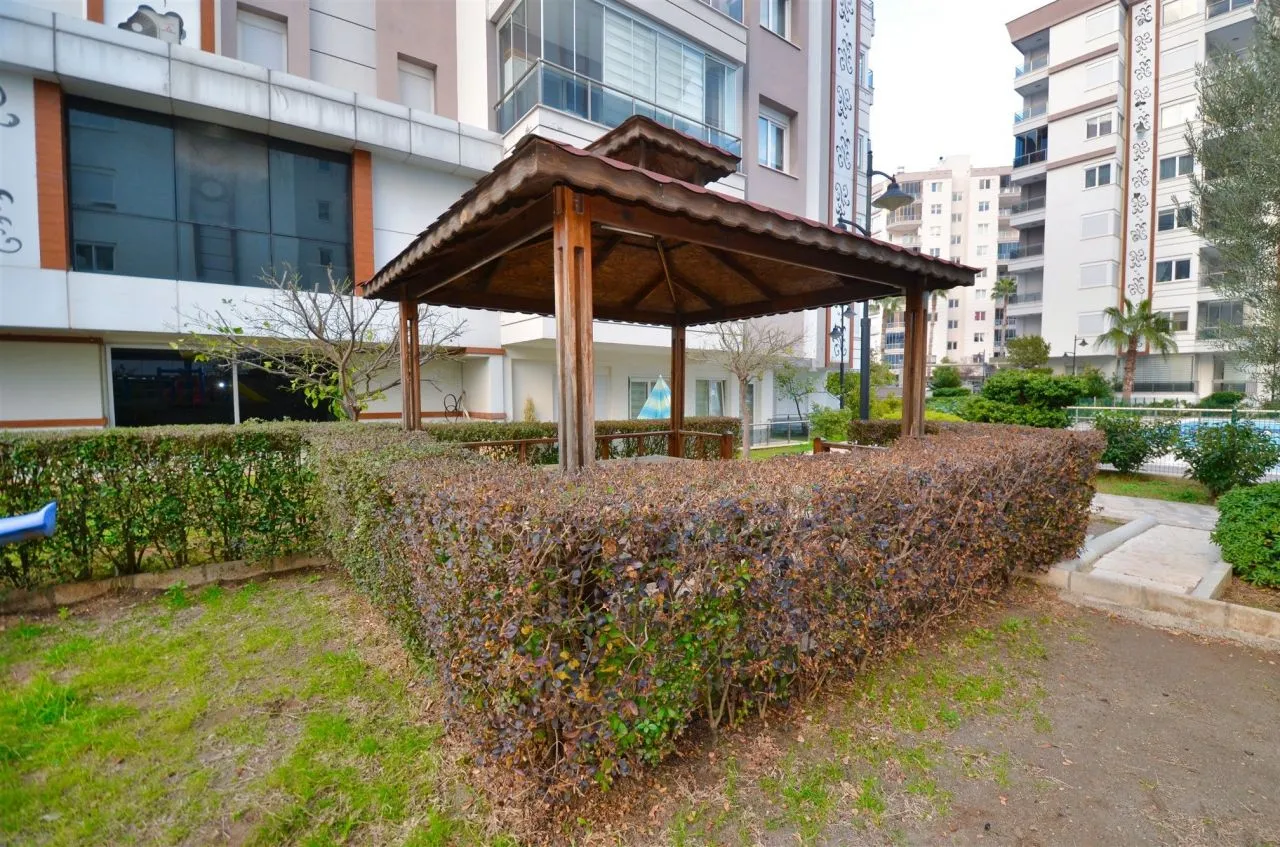 Комплекс, в котором расположена предлагаемая квартира состоит из трех блоков и построен в 2015 году. Придомовая территория огорожена, имеется открытая парковка, бассейн, сауна, фитнес – зал, крытый паркинг. Квартира находится на 2 этаже и имеет 2 спальные комнаты, кухню октрытого плана, объединенную с просторной гостиной и роскошную террасу. Данная планировка очень удобна для большой семьи, а небольшое количество соседей и уединенность комплекса располагают к спокойной атмосфере и комфортному проживанию с ежедневными прогулками до знаменитой набережной Коньяалты.