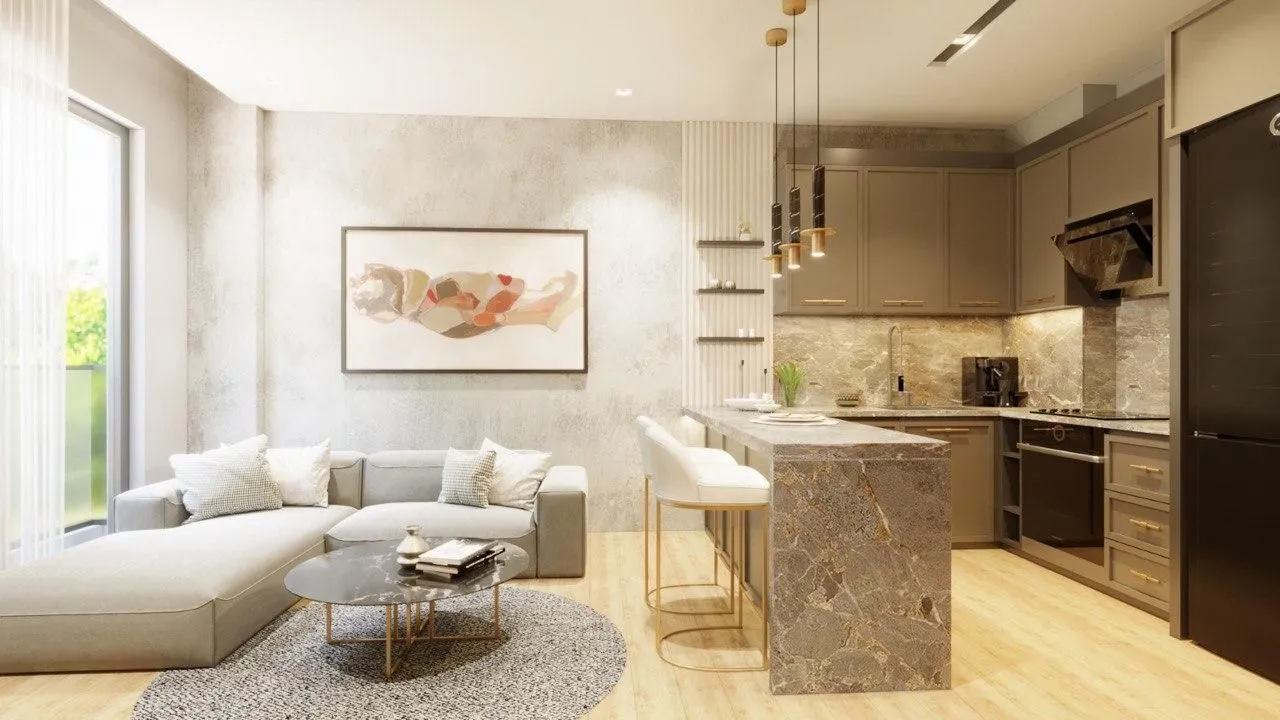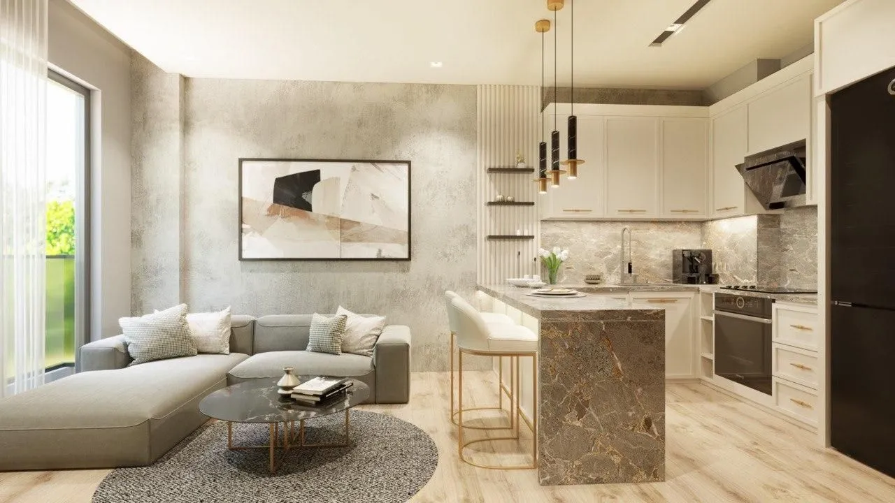 Квартиры с современным планировками и дизайнерской мебелью 60 кв.м. 2+1 с двумя спальнями и гостиной, с панорамным видом на море.