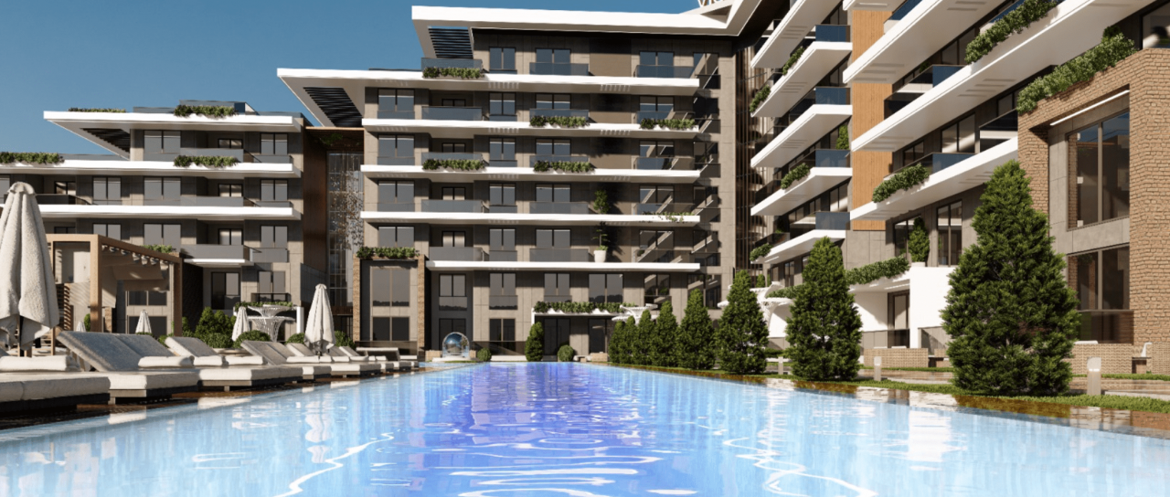 - 1+1 апартаменты с чистой площадью 45 м2 (балкон) с кухней, объединенной с гостиной.