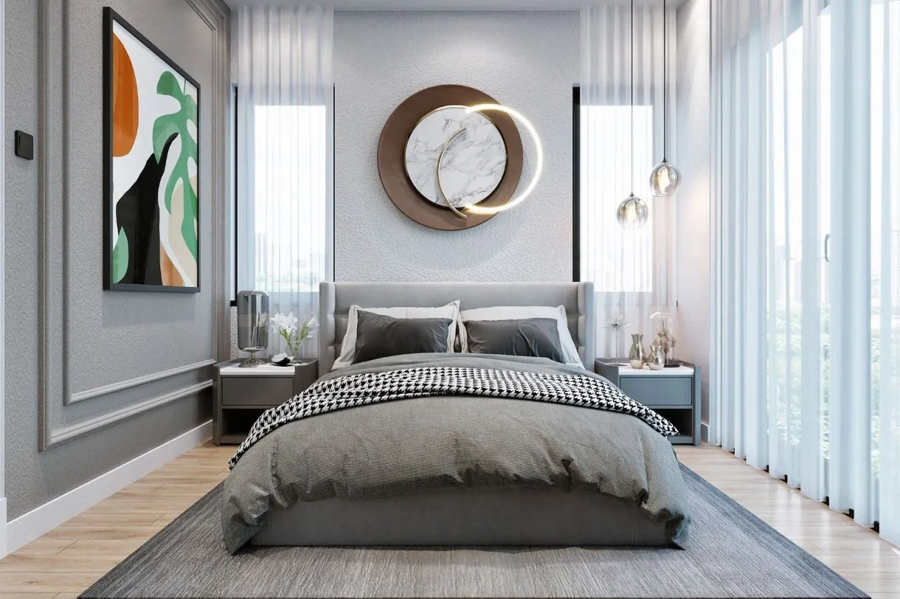 Все квартиры планировки 1+1, то есть двухкомнатные:гостиная с кухней открытого типаспальняванная комната с душевой кабинойбалкон.