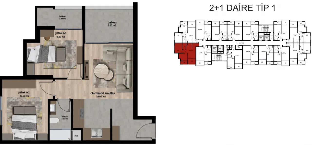 2+1 70м2