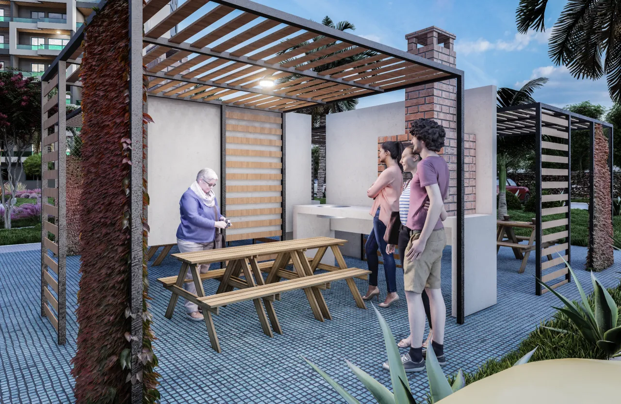 Социальная инфраструктура: - Крытый бассейн, аквапарт, баня, сауна, зоня барбекю и отдыха, генератор, система видео-наблюдения, открытая парковка