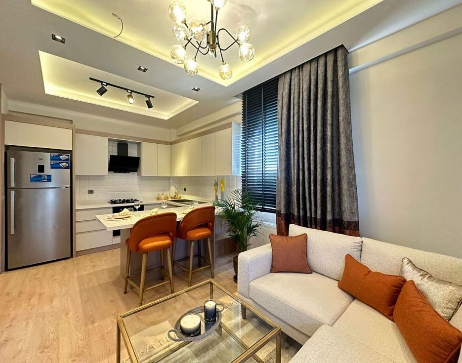Квартира 1+1 находится в новом комплексе района Арпачбахшиш. Квартира имеет общую площадь 60 м2, расположена на 1 этаже в комплексе 2023 года постройки. Квартира продается с чистовой отделкой, кухонным гарнитуром и сантехникой в санузлах (на фото шоурум). По планировке квартира имеет кухню в американском стиле, объединенную с гостиной, 1 спальню, санузел и балкон.Комплекс расположен всего в 400 метрах от моря. На территории комплекса имеется открытый бассейн, открытая парковка, детская площадка, барбекю и генератор.