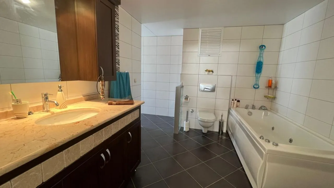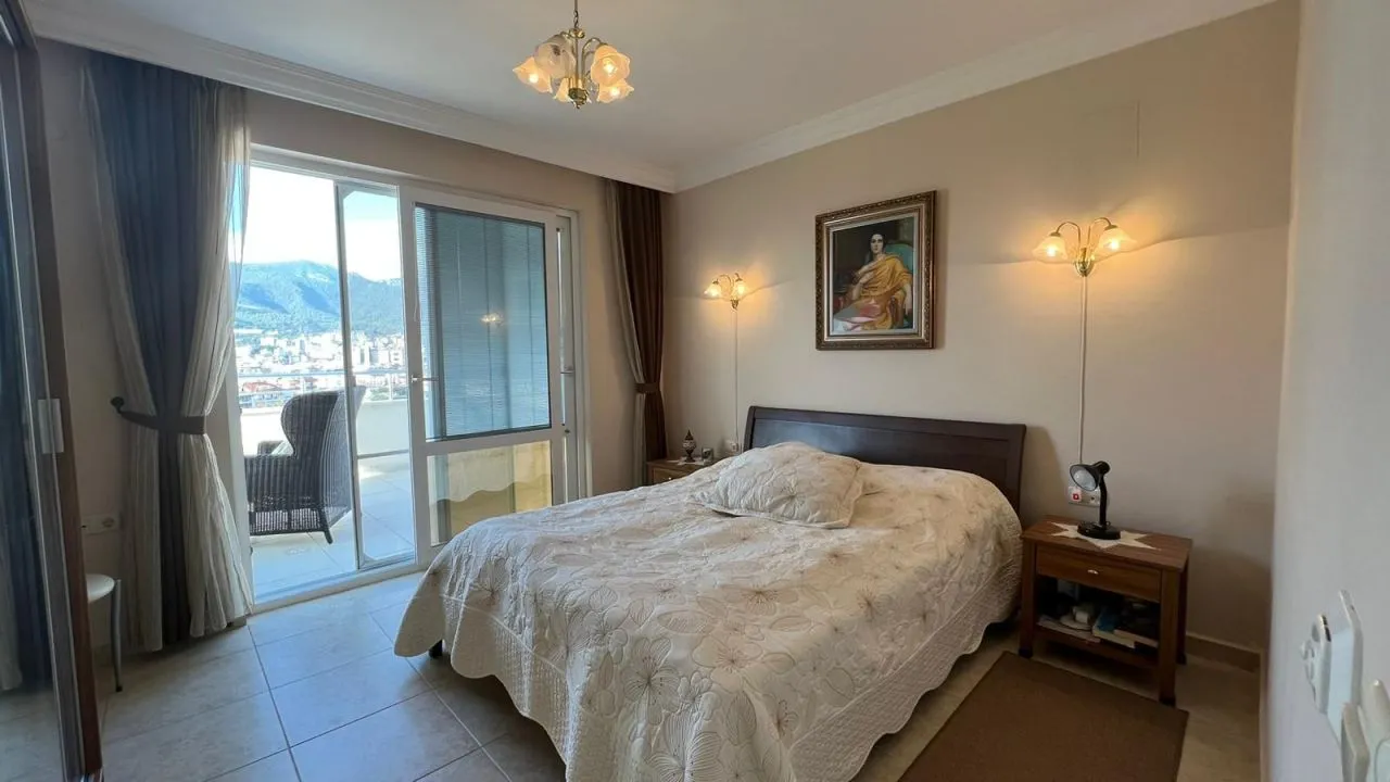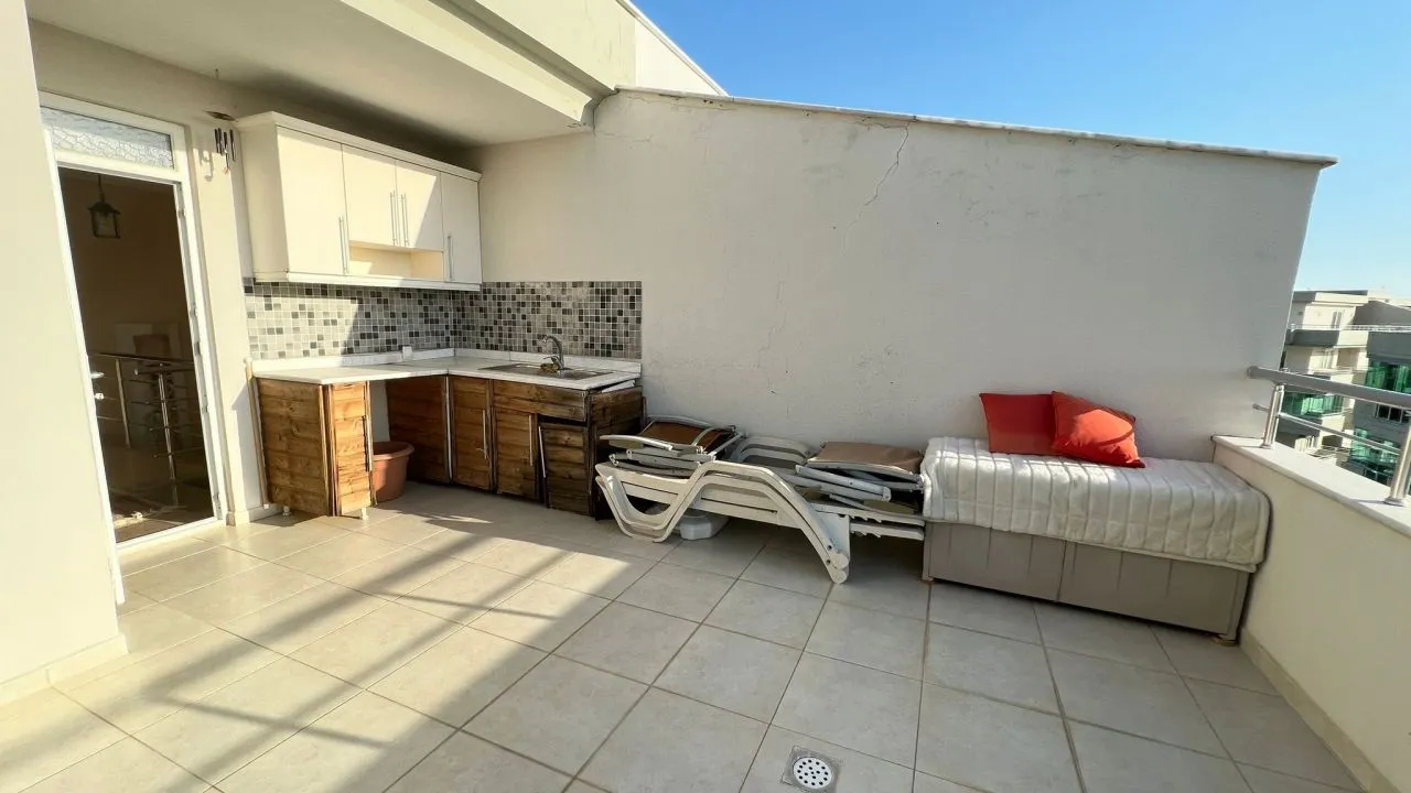 Предлагаем Вам пентхаус в блоке А комплекса Sea Star с 4 спальнями, одной большой гостиной с американской открытой кухней, двумя большими ванными комнатами, кладовой и двумя балконами и большой террасой с кухней на крыше с потрясающим видом на Аланию. Также в нашей квартире есть собственная сауна на крыше.
