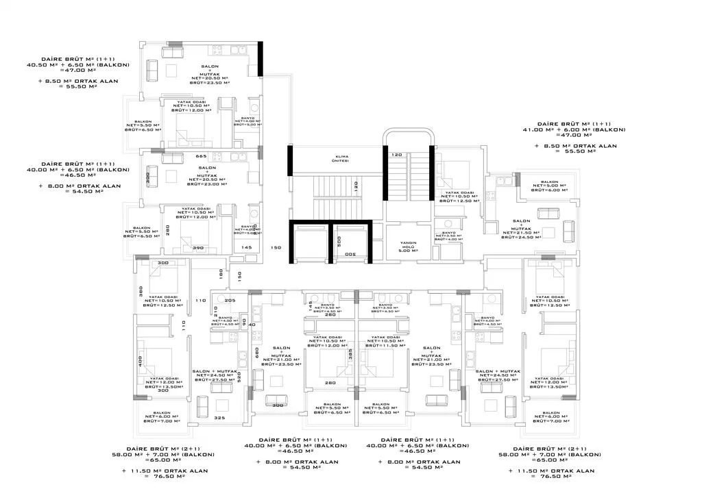 На продажу представлены квартиры и пентхаусы планировки 1+1, 2+1 и 3+1. В стоимость всех квартир входит чистовая отделка, кухонные гарнитуры и укомплектованные ванные комнаты.