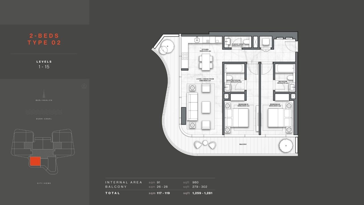 - Апартаменты, 2 спальная комната, 126m², €766,000