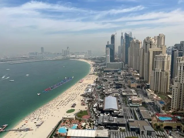 полный панорЦена амный вид на море , Пальма Джумейра и Blue water