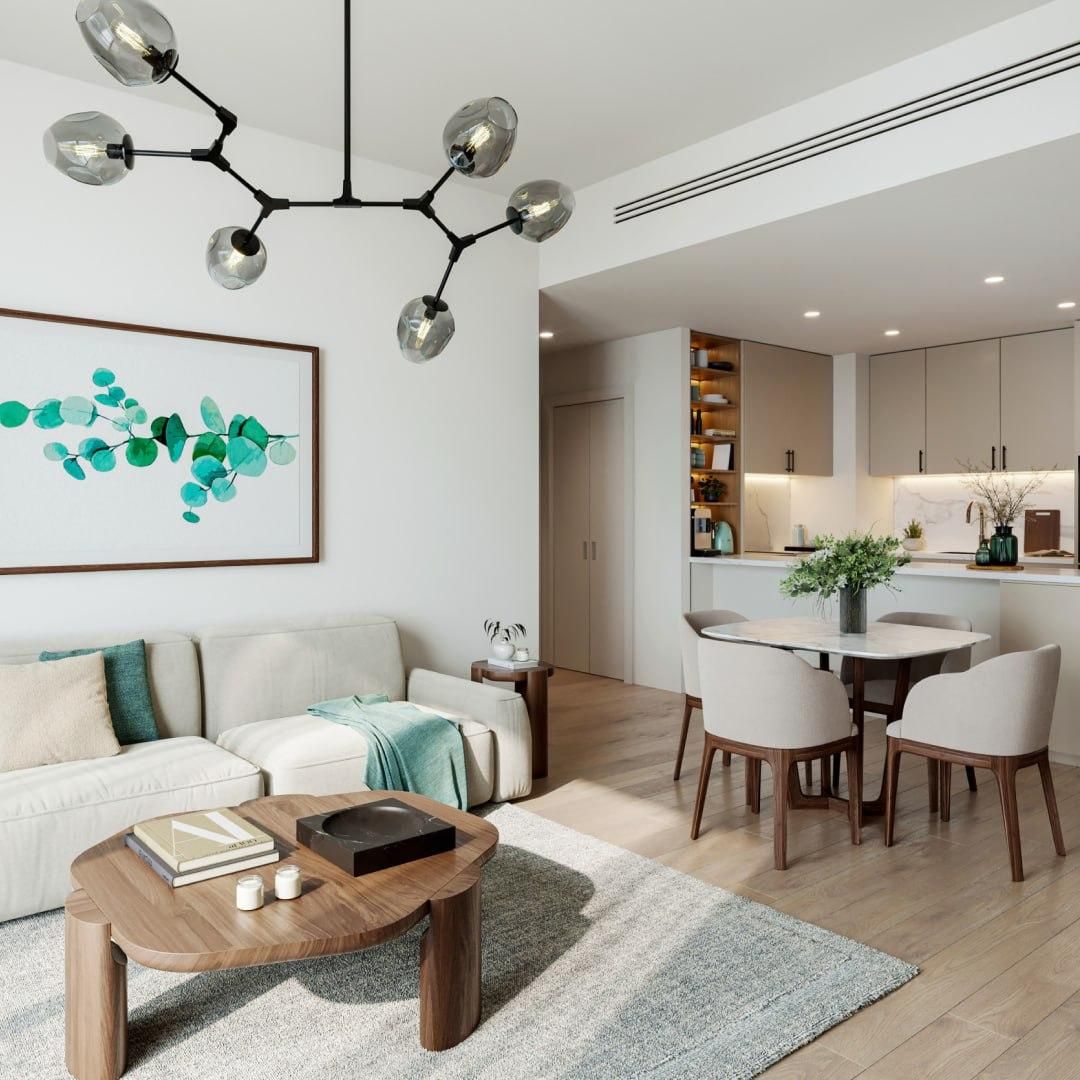 Резиденции будут оснащены полностью оборудованными кухнями и стильными интерьерами. Планировки включают частные балконы с видом на озелененный район. Владельцы объектов с тремя спальнями получат в свое распоряжение прачечную и кладовую. Проживая в данном комплексе вы получите доступ к тренажерному залу и внутреннему двору с бассейном, просторной террасой и детскими игровыми площадками. Также на первом этаже комплекса будут располагаться магазины и заведения F&B.