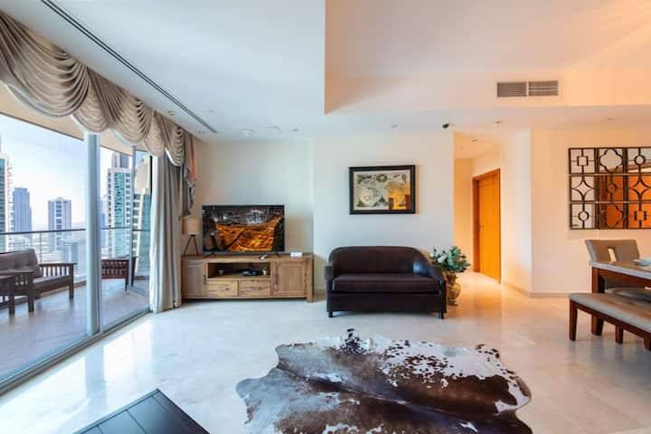 Эти апартаменты с 3 кроватями оформлены в классическом стиле и располагают просторной гостиной с видом на полностью меблированный балкон с видом на город Дубай. Гостиная оборудована телевизионной комнатой с двумя диванами, креслом и обеденным столом на 6+ человек. Полностью оборудованная кухня оснащена всей необходимой бытовой техникой, включая кофемашину для вашего бесшовного пребывания в Дубае.