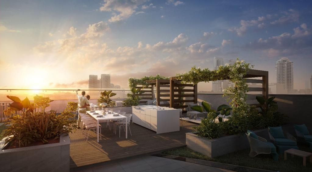- спортзал и спортивная площадка,- бассейн,- лаунж-зона под открытым небом,- водная дорожка в окружении зеленой зоны отдыха,- детская площадка,- рабочее пространство,- магазины,- 3х-этажный паркинг.Вся необходимая инфраструктура: